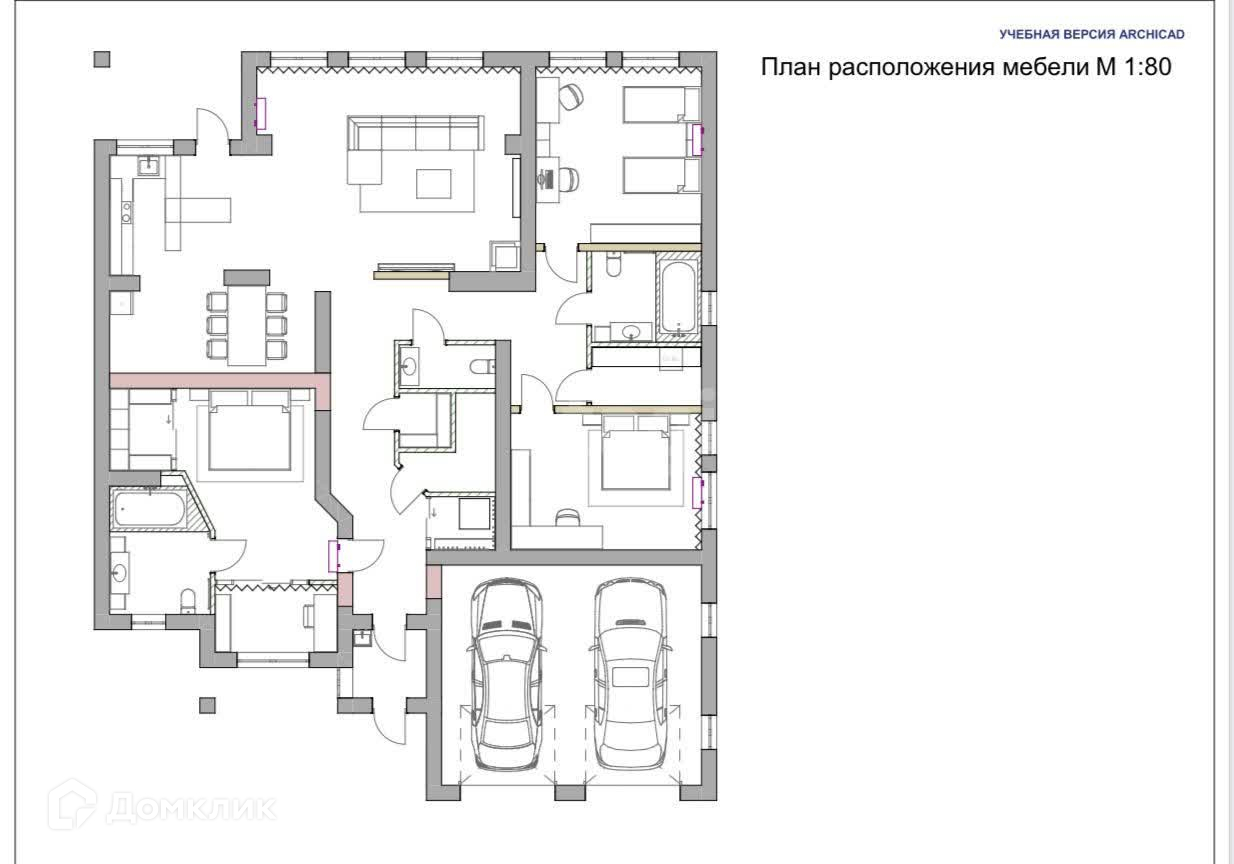 • ПЛАН ДОМА (прикреплен в фото): 1. Большой зал с кухней высота потолка около 7 метров; 2. Взрослая Мастер спальня, с отдельной гардеробной, кабинетом, ванной (душ, туалет, ванна, раковины); 3. Детская спальня на 2 детей; 4. Гостевая спальня; 5. Детская ванна; 6. Гостевой санузел; 7. Прихожая; 8. Отдельная большая гардеробная; 9. Прачечная/техническое помещение; 10. Гараж на две машины; 11. Крытая Тарраса. Итого 200 кв.м.