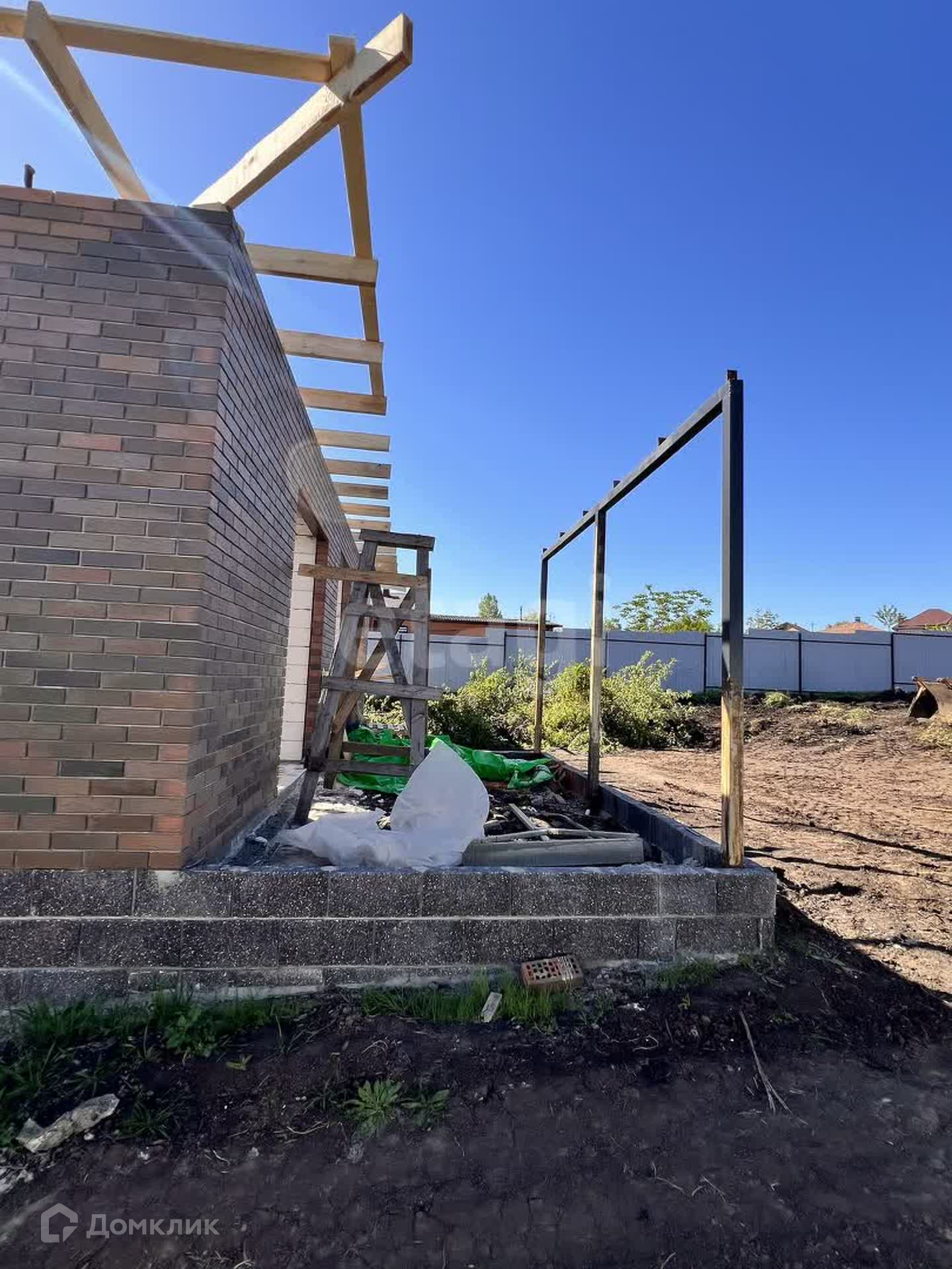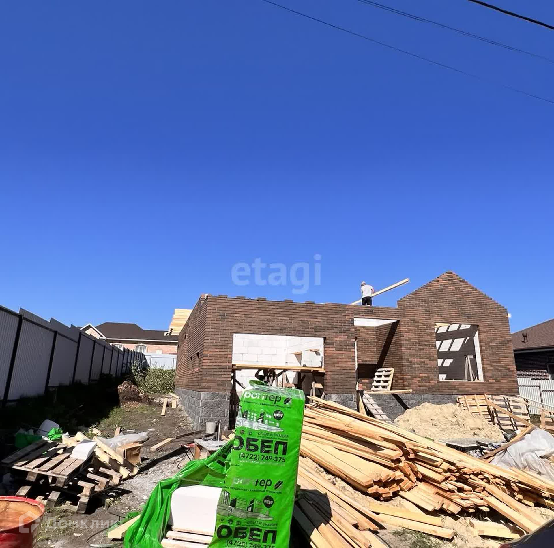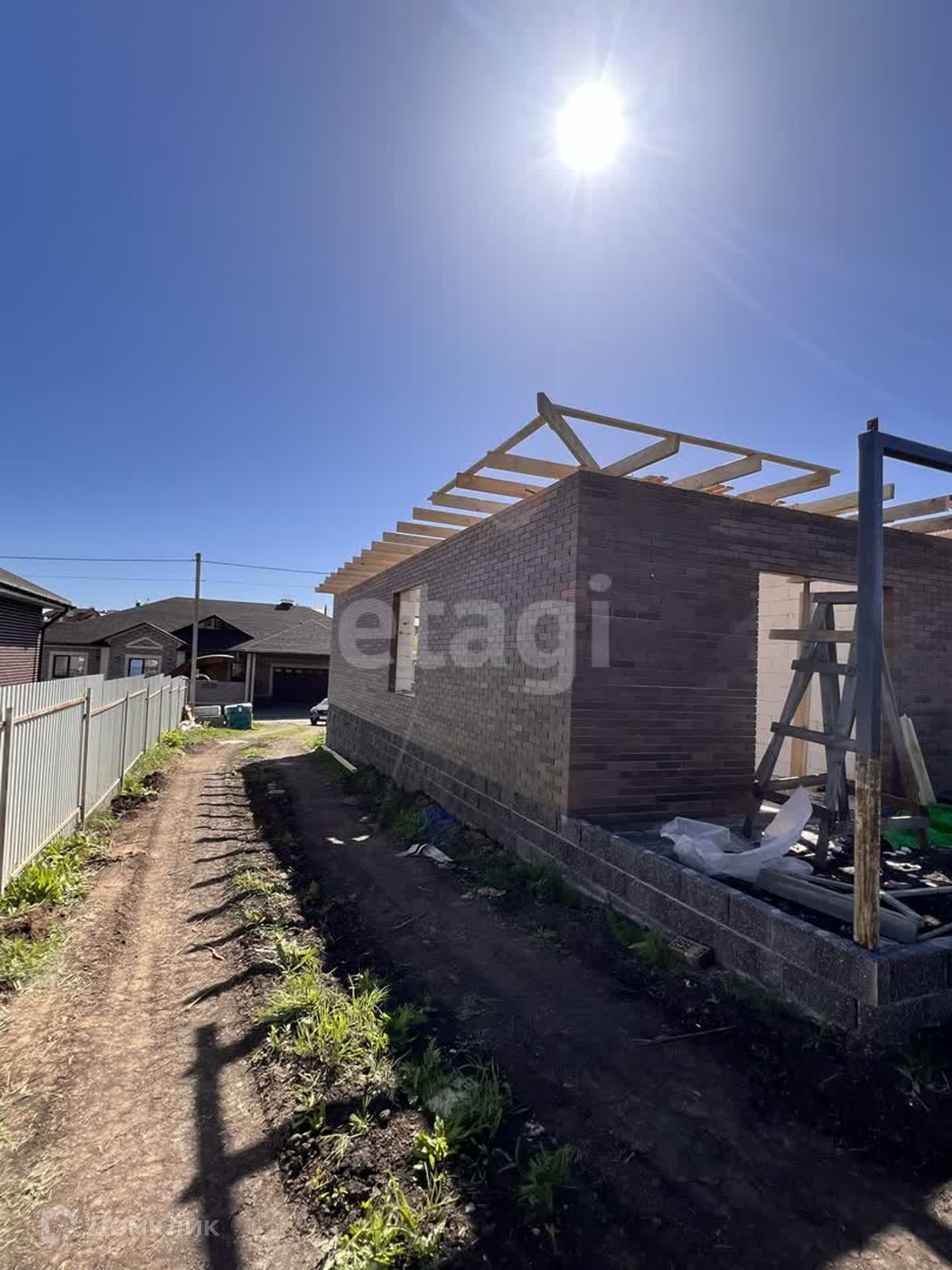 Благоустройство двора-тротуарная плитка (по всему участку), забор из кирпича. Разведены коммуникации, отопление - батареи и система «тёплый пол» по всему дому.