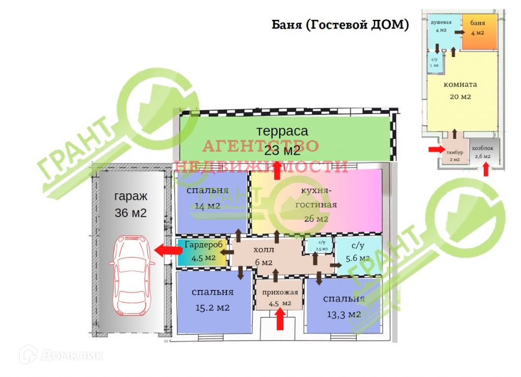 ДOM : 95 м2 с полной отделкой под ключ , большой гараж 36 м2, уютная терраса 23 м2, отдельно стоящая БАНЯ(ГОСТЕВОЙ ДОМ) в стиль основного ДОМА 35 м2.