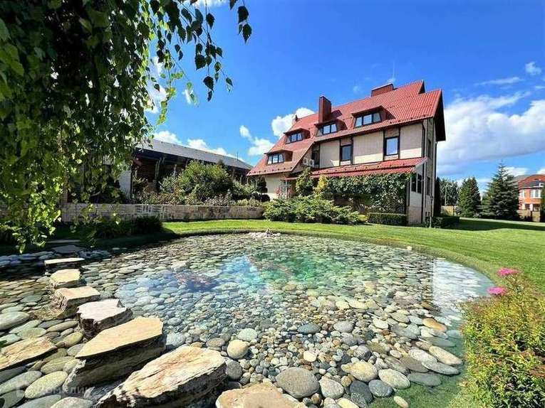 - 1 этаж: гараж на 2 авто с входом из дома, просторная гардеробная, гостиная с камином, кухня-столовая + дополнительная обеденная зона, с/у, ванная, так же имеется отдельная комната - спальная со своей кухней и с/у и ванной (для проживания помошницы по дому);