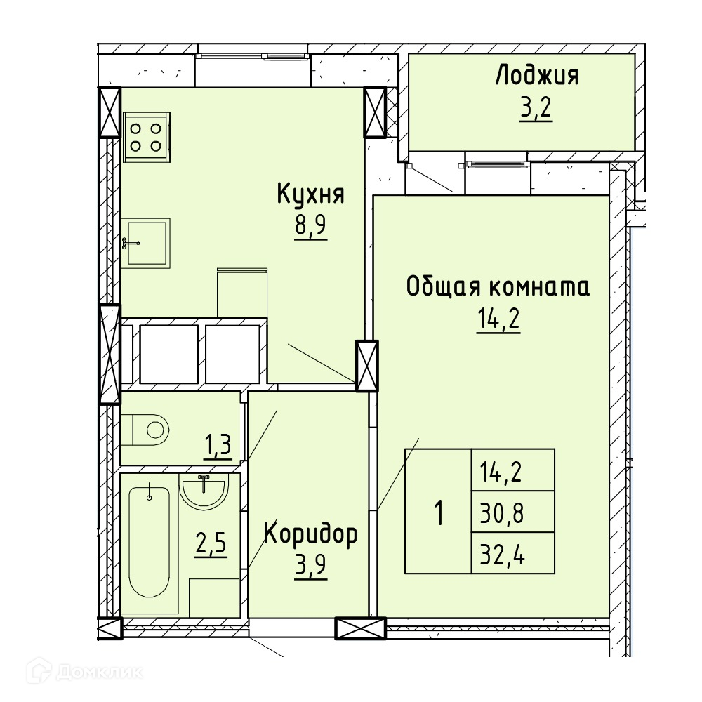 Общая площадь 32 м2