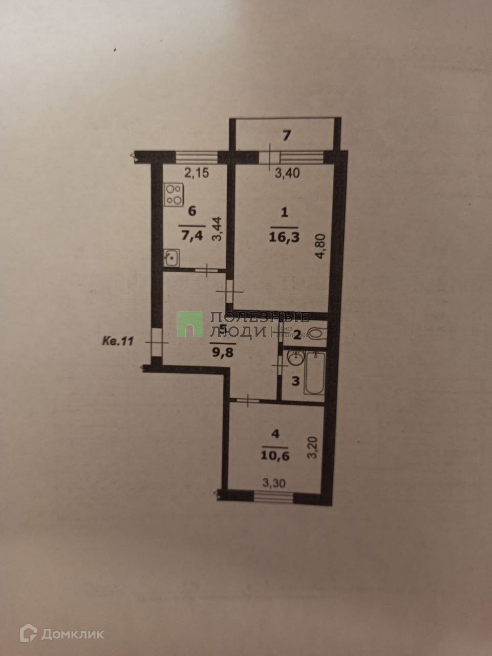 Жилая площадь 26.9 м2