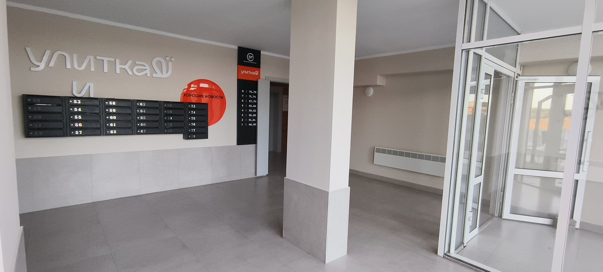 Просторный подъезд, прекрасная входная группа с грузопассажирским лифтом, просторной стоянкой для колясок и велосипедов. На 1-м этаже имеются 2 выхода: один к парковке, другой – во внутренний двор (устроен по принципу «Двор - без машин»). Придомовая территория ухоженная и полностью облагорожена.