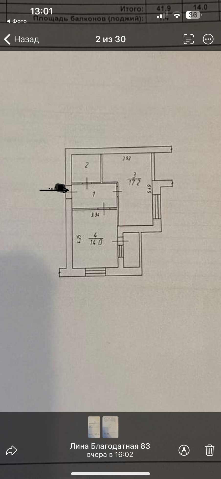 Балкон, лоджия 1 балкон