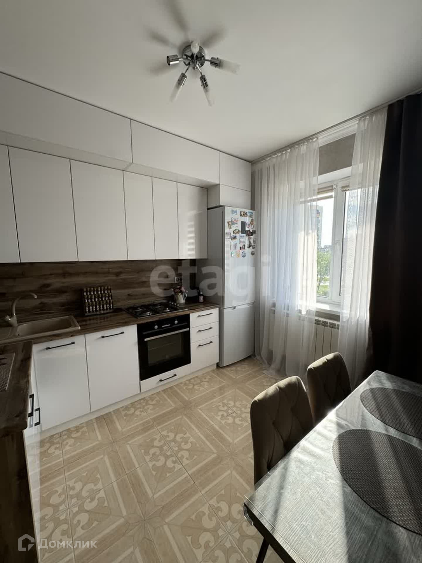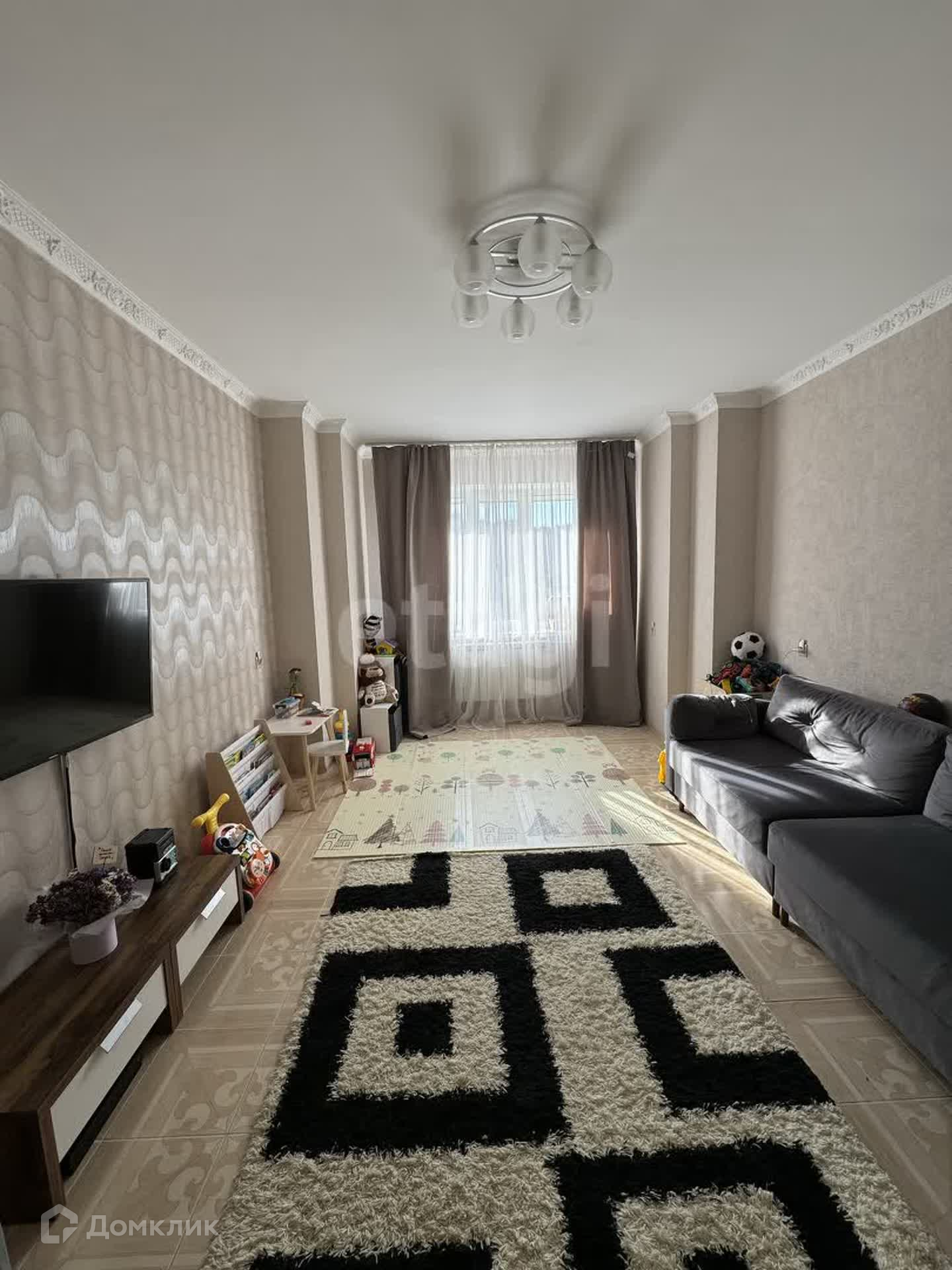 Ремонт современный новый: на полу по всей квартире плитка + теплый электрический пол, потолок ровный, окна ПВХ везде, современные радиаторы, сан узел в новом кафеле. Просторная придомовая парковка, дает возможность оставлять автомобиль в шаговой доступности