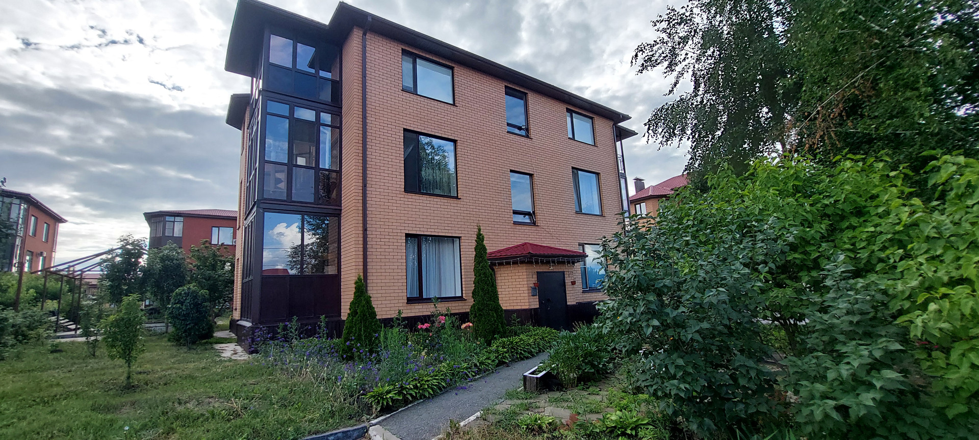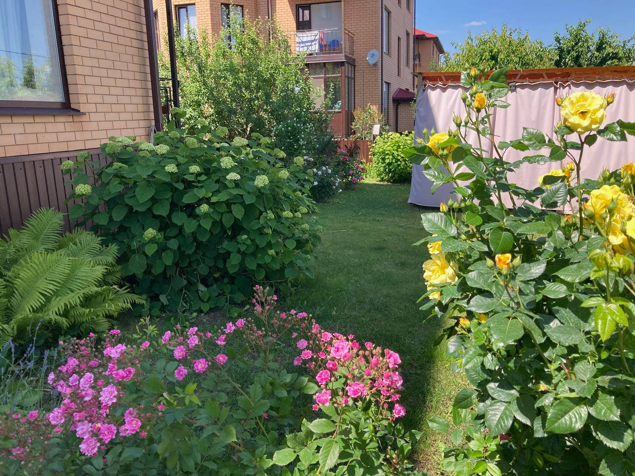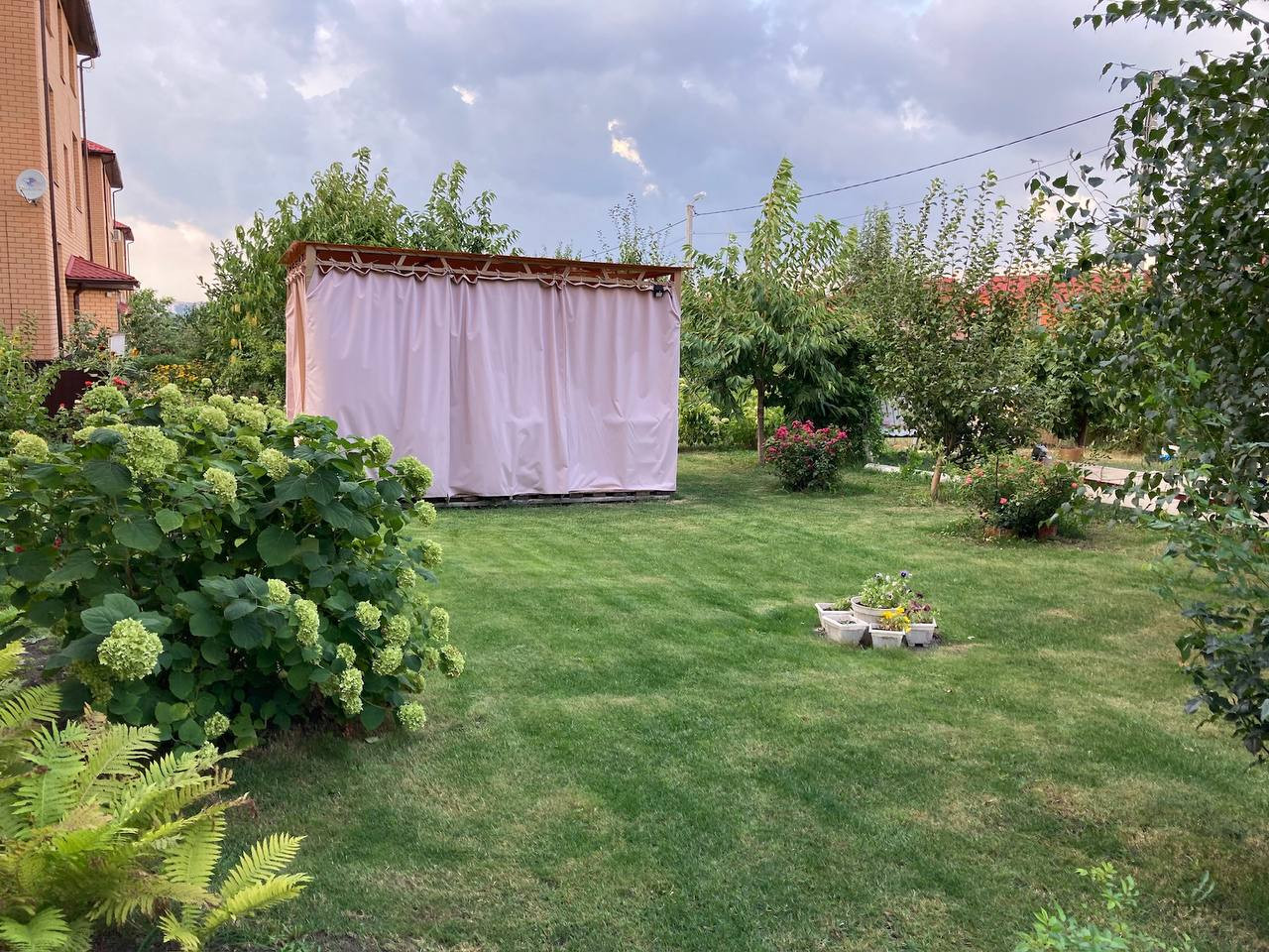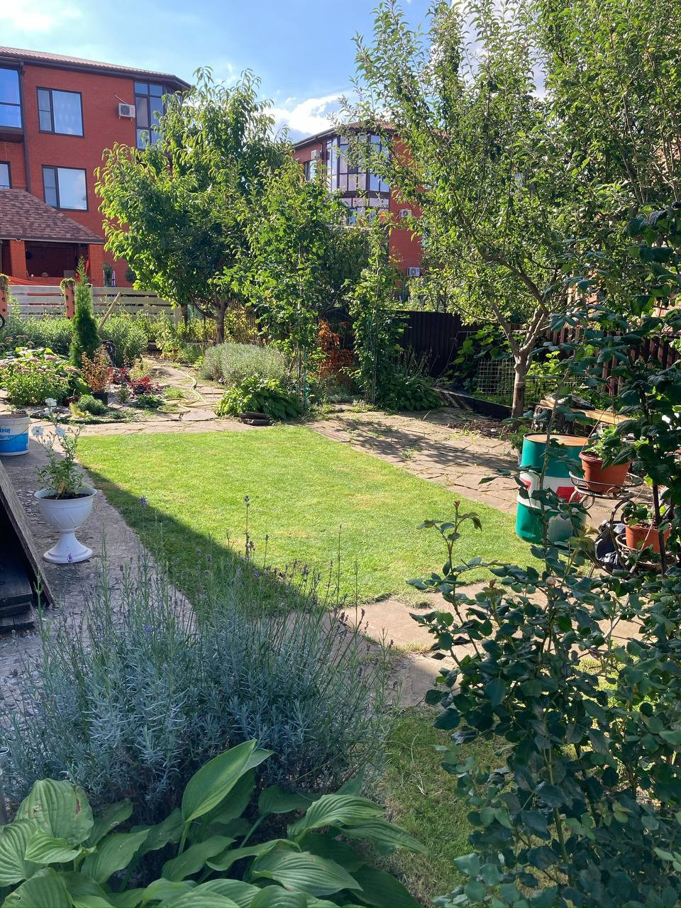 Территория полностью благоустроена (земля находится в общедомовой собственности-15 соток). Беседка, мангальная зона, качели. Ландшафтный дизайн придомовой территории с индивидуальным участком для выращивания цветов, садовых и овощных культур. Просторный двор с большой придомовой парковкой, на территории ЖК есть детская и спортивная площадки.