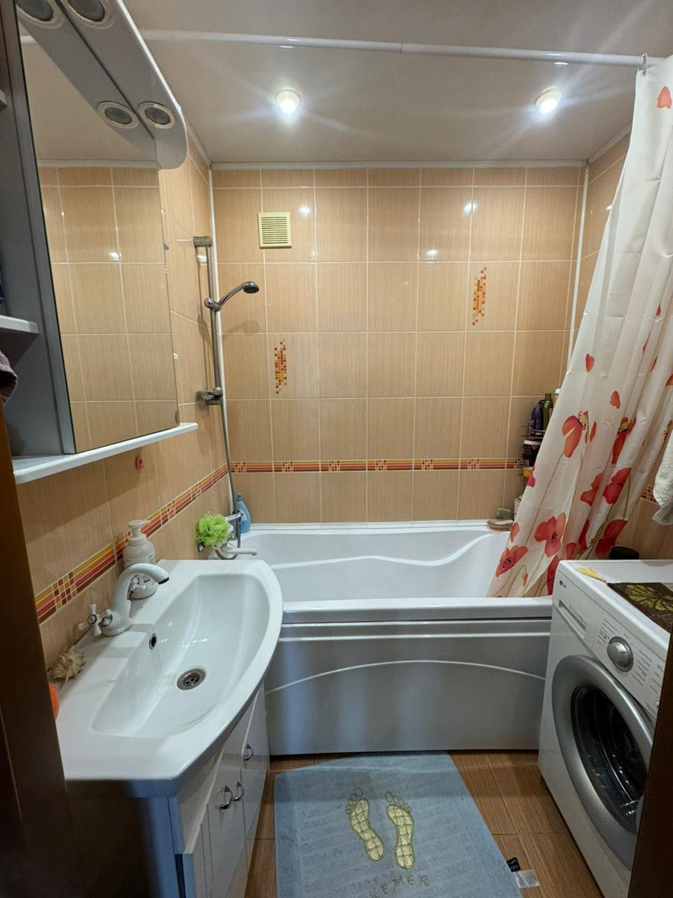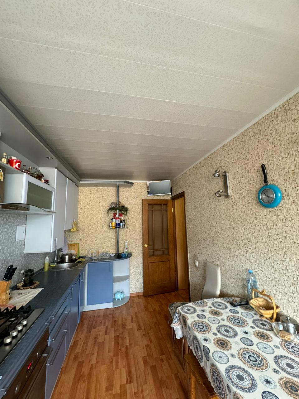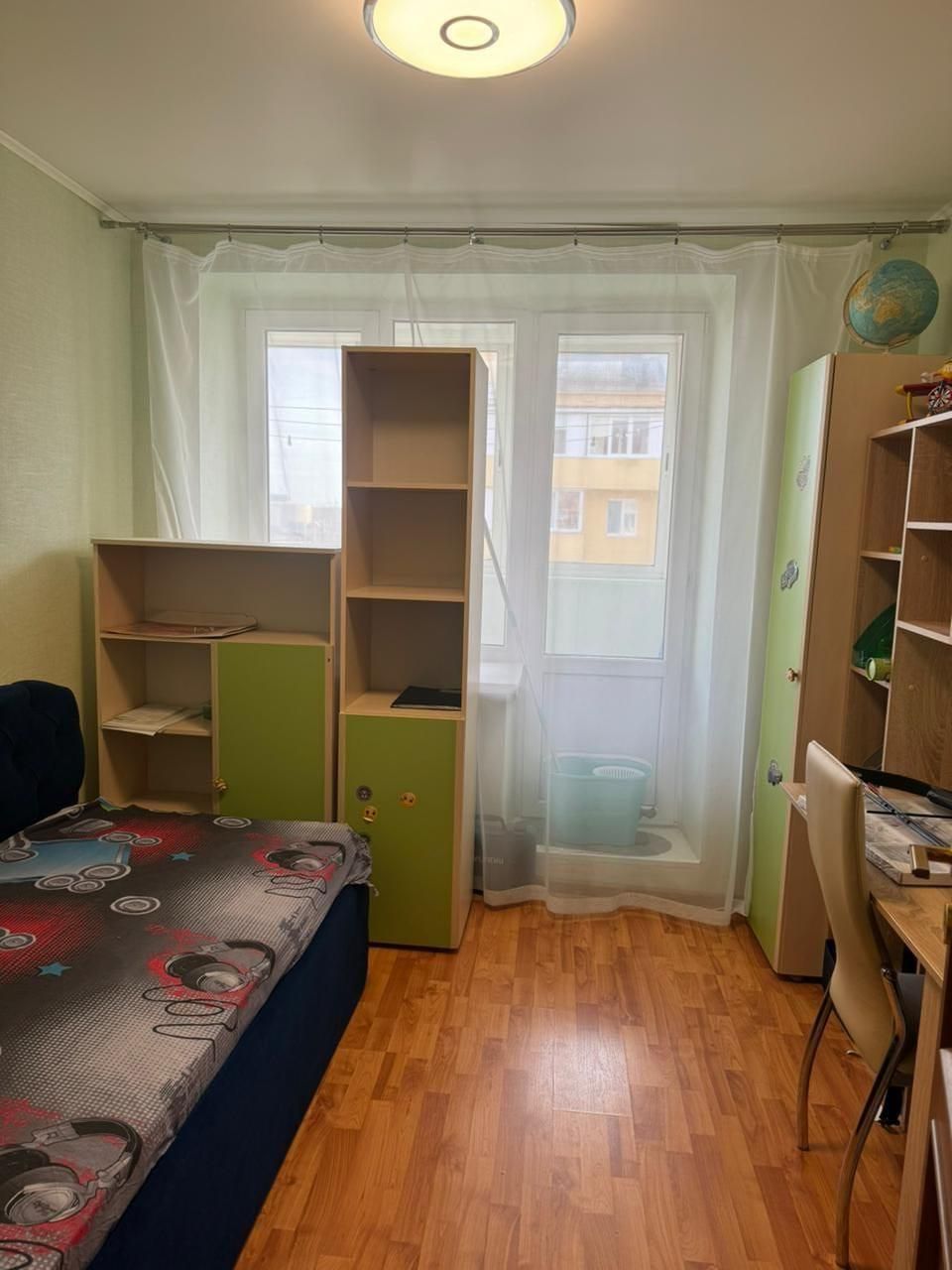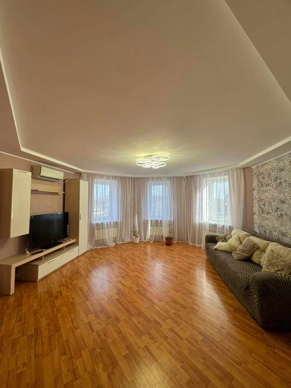 В квартире остаётся шкаф купе; детская стенка с новым диваном; в зале стенка и диван; кондиционер,в спальне кровать, шкаф, комод; кухня, посудомоечная машина,стол, стулья.