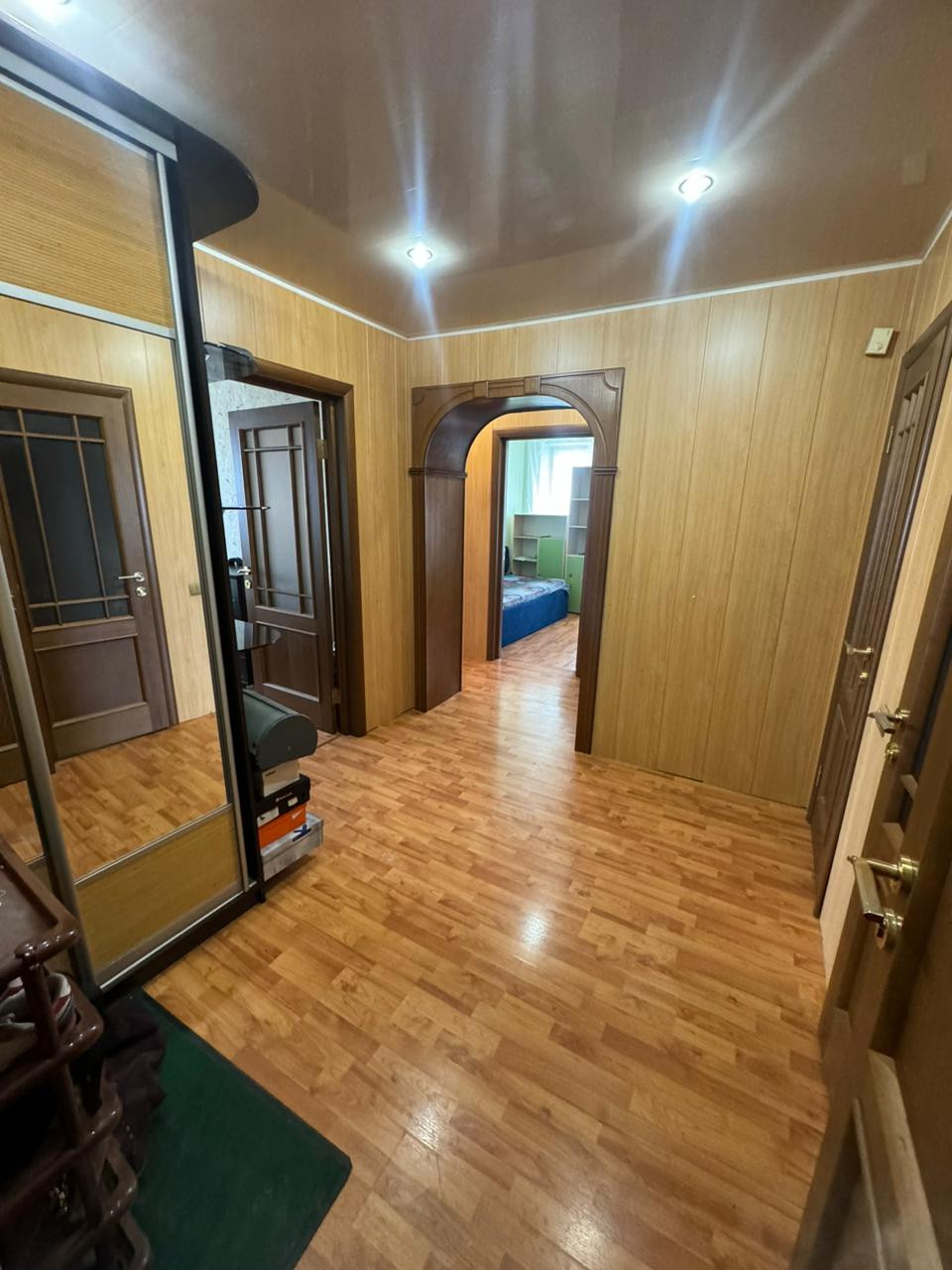 Квартира находится на чистой лестничной площадке, подъезд убирают два раза в месяц. Придомовая территория облагорожена,ухоженный двор и оборудована детская площадка.