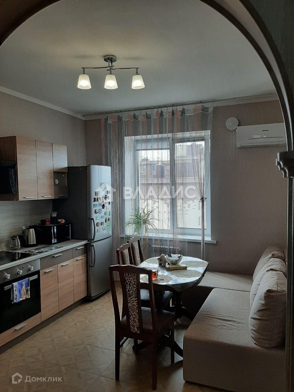 Огромная кухня 12,3м2 позволяет использовать её в виде гостиной и разместиться большой семьёй за одним столом. Встроенная кухня, мебель и техника остаётся. Кондиционер сделает микроклимат в квартире по вашему вкусу.