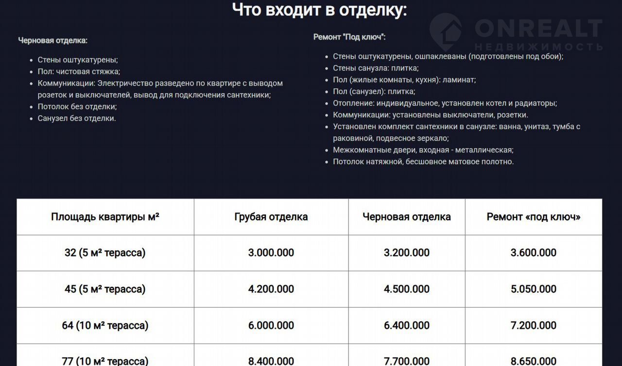 -- Квартиры предлагаются как в черновой отделке, для тех, кто хочет создать интерьер по своему вкусу, так и в чистовой отделке "под ключ", готовые к проживанию.