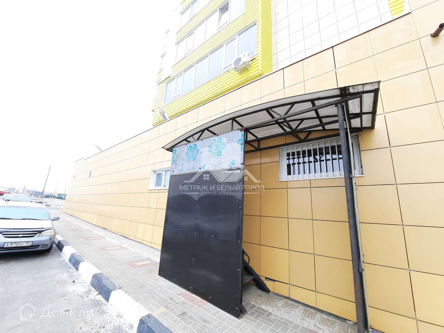 Рекламная панель, двойная входная металлическая дверь.