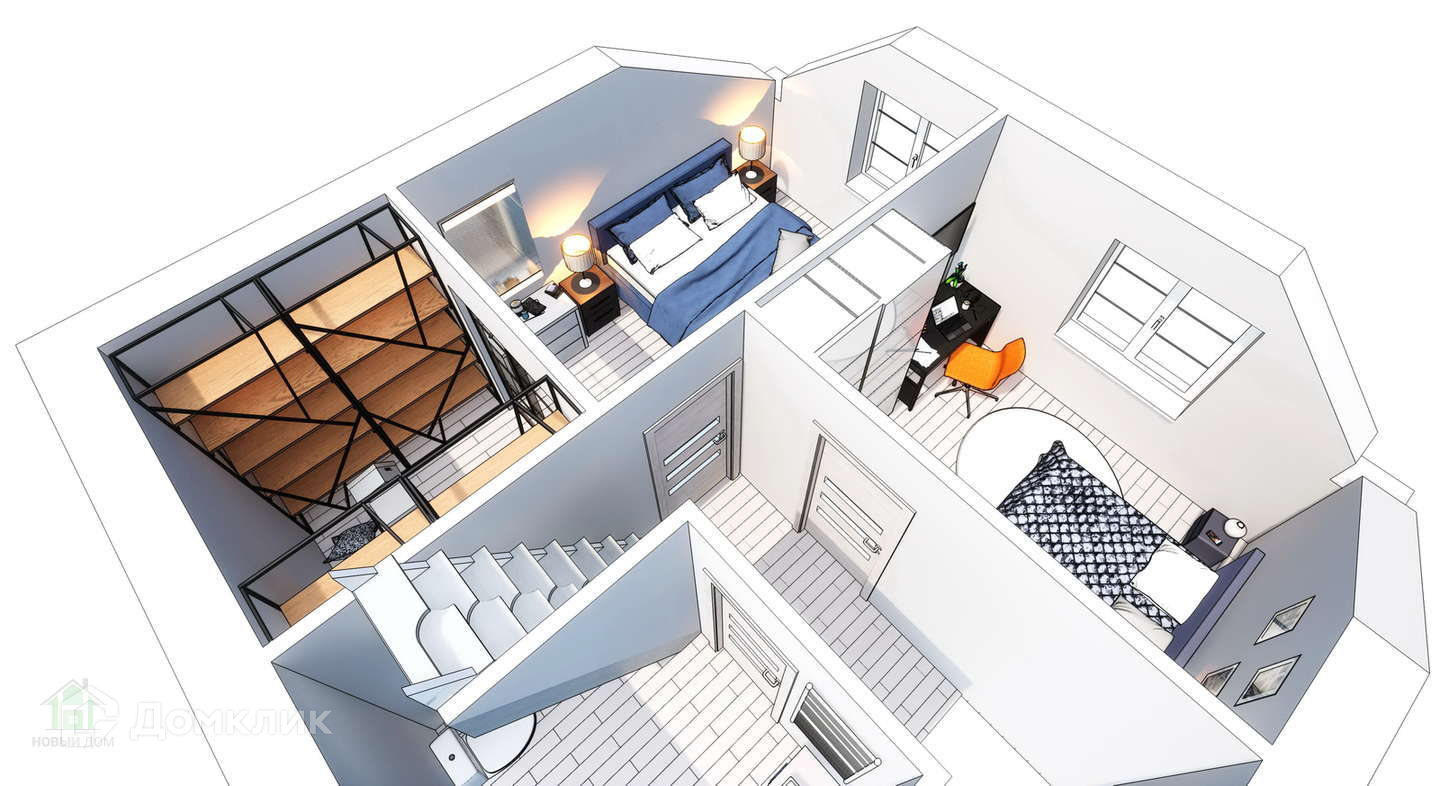 Общая площадь 100м2+. На первом этаже: большой тамбур, холл, котельная с постирочной, С.У., кладовка под лестничным маршем с заниженным уровнем пола для большей доступности, кухня ( также имеет занижение уровня пола, чтобы была возможность установки столешницы кухонного гарнитура в подоконник окна) и большая гостиная с лестничным маршем на второй этаж. Первый этаж оснащен тёплым полом, на полу по первому этажу лежит керамогранит. На втором этаже: холл, ванная, детская, спальня, гардеробная. На полу ламинат. В ванной комнате на полу и по стенам кафель, установлена ванна, унитаз, смеситель, под кафелем на полу "теплый пол". На третьем этаже: большой кабинет ( спальня для подростка ), небольшая кладовка под кровлей. На полу ламинат.
