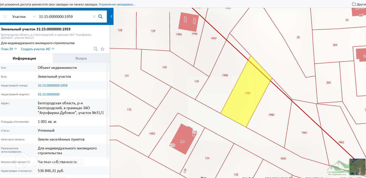 Кадастровый номер - 31:15:0000000:1959