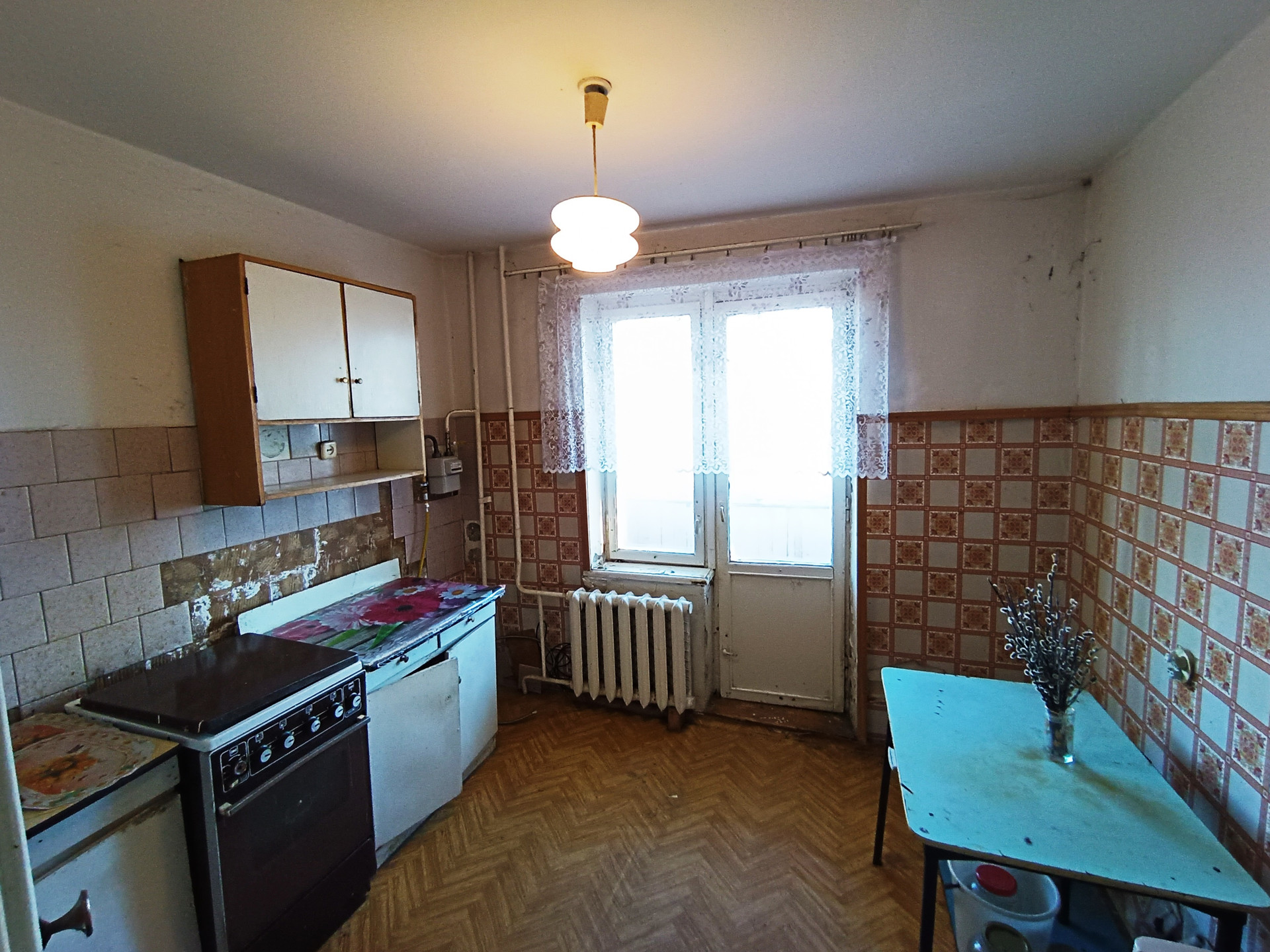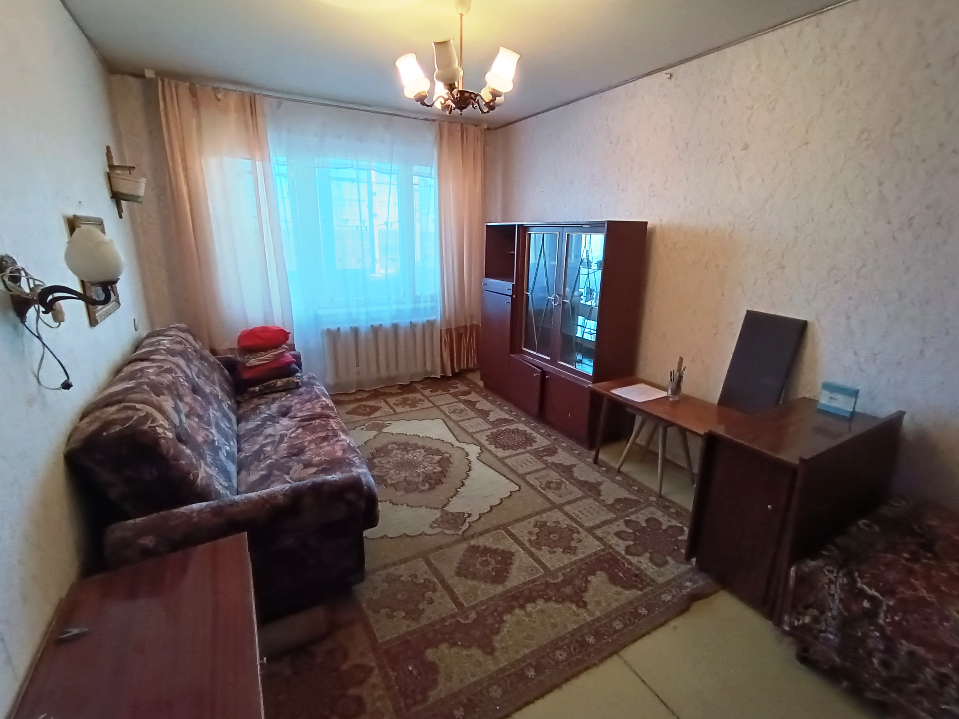 Уютная, теплая квартира в обычном состоянии, окна деревянные, бетонный пол(линолеум), горячая и хол. вода(центральная), балкон шесть метров, прямая продажа. Один собственник, торг.