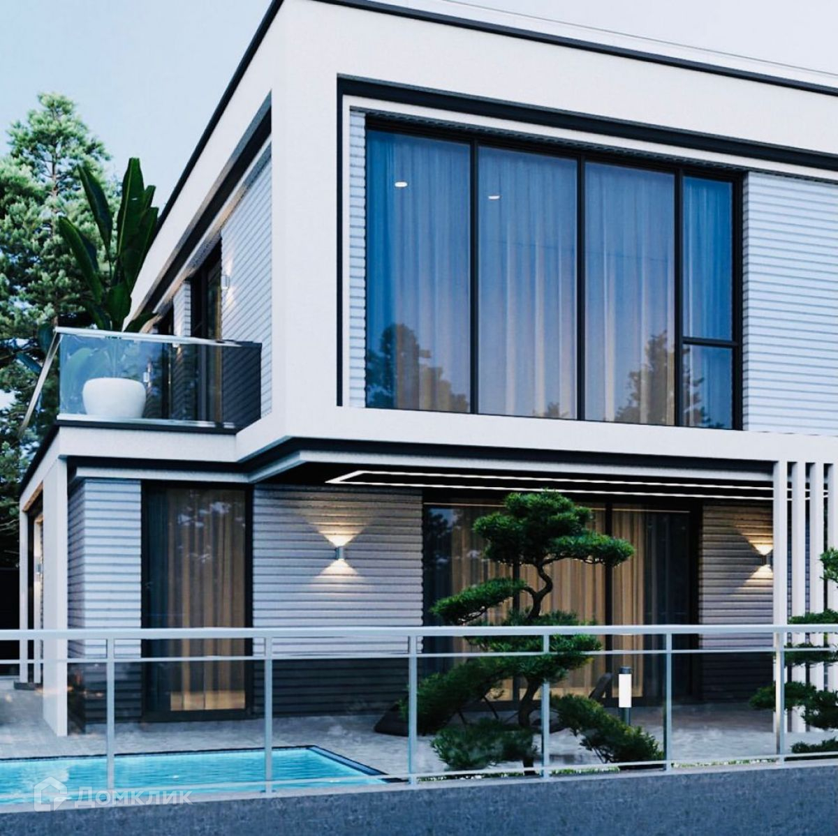 Отделка фасада композитный материал и полудрагоценный Оникс. Цветовая гамма бело-серые тона. На территории каждого коттеджа зона отдыха с бассейном, озеленением и парковочные места. Безопасность комплекса: охрана, видео наблюдение, закрытая территория, въезд через КПП.