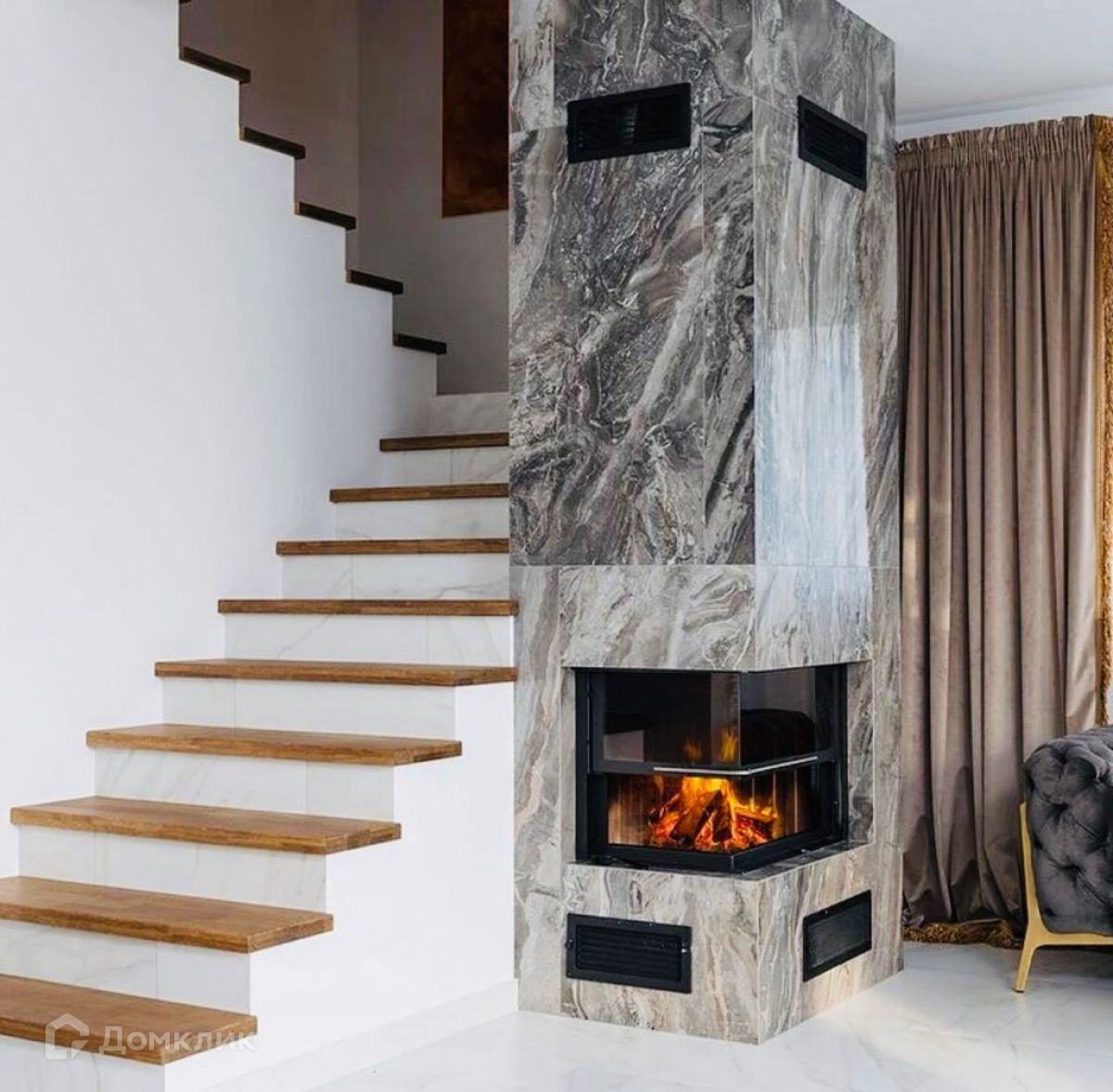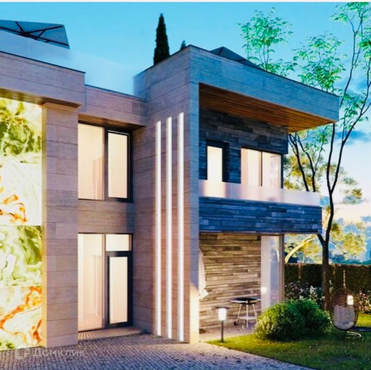 Фасады домов отделаны композитным материалом на основе глины и натурального камня. Передние стены домов украшены светящимися слэбами из оникса различных цветов и фактур. Такое решение позволило создать продуманный до мелочей стиль, в котором элегантность и умеренность осознанно превалируют над помпезностью и излишествами.