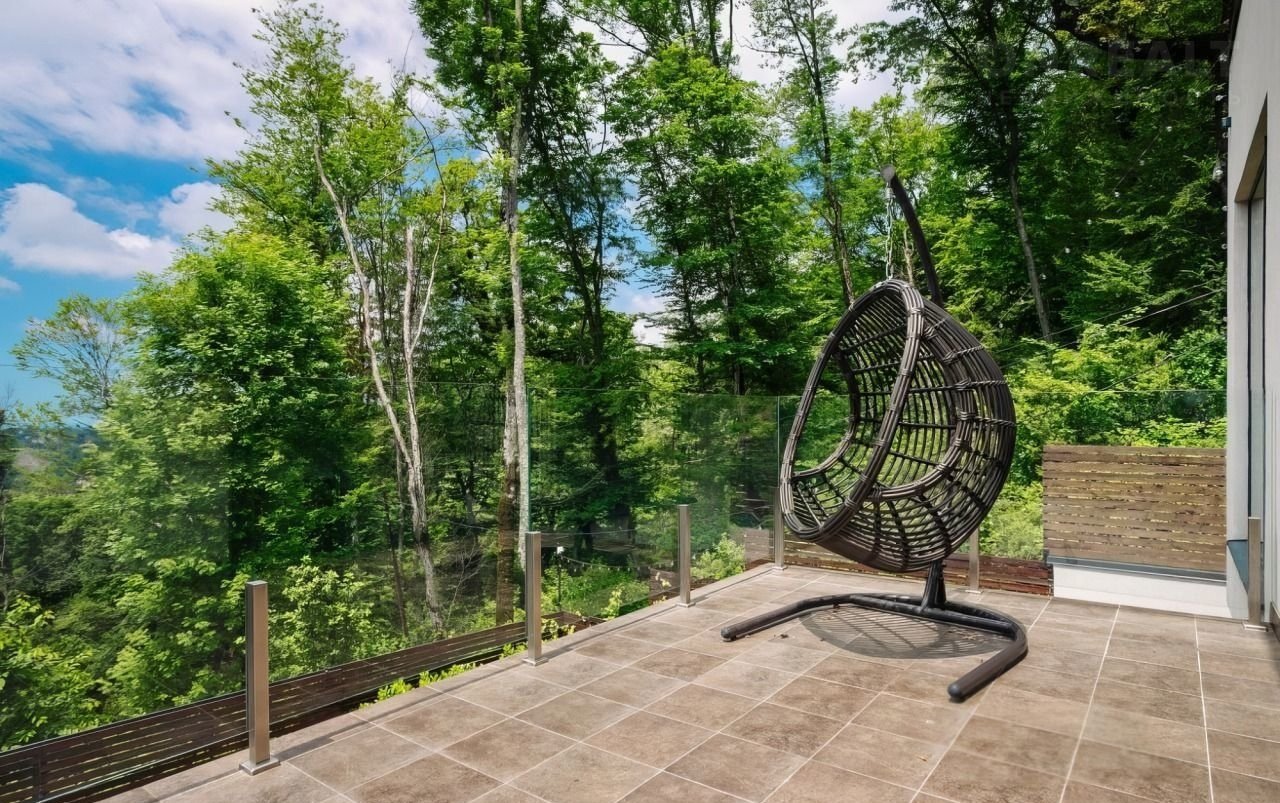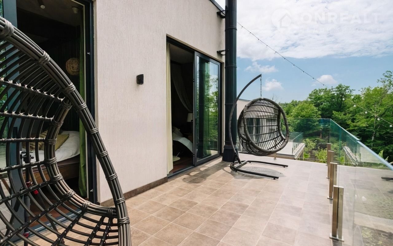 — Балкон с видом на ландшафтный дизайн.