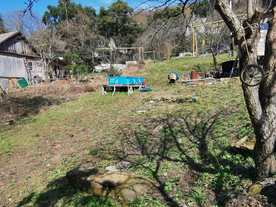 На участке есть временное одноэтажное строение 45 кв.м, которое пригодно для проживания рабочих на период строительства основного дома. Со второго этажа дома будет открываться прекрасный вид на море. Хотя с дороги его тоже видно. Участок всегда залит солнцем, т.к. находится с такой стороны горы, где тени от горы нет. Оползней не бывает. Справа и слева постоянно проживают добрые соседи.