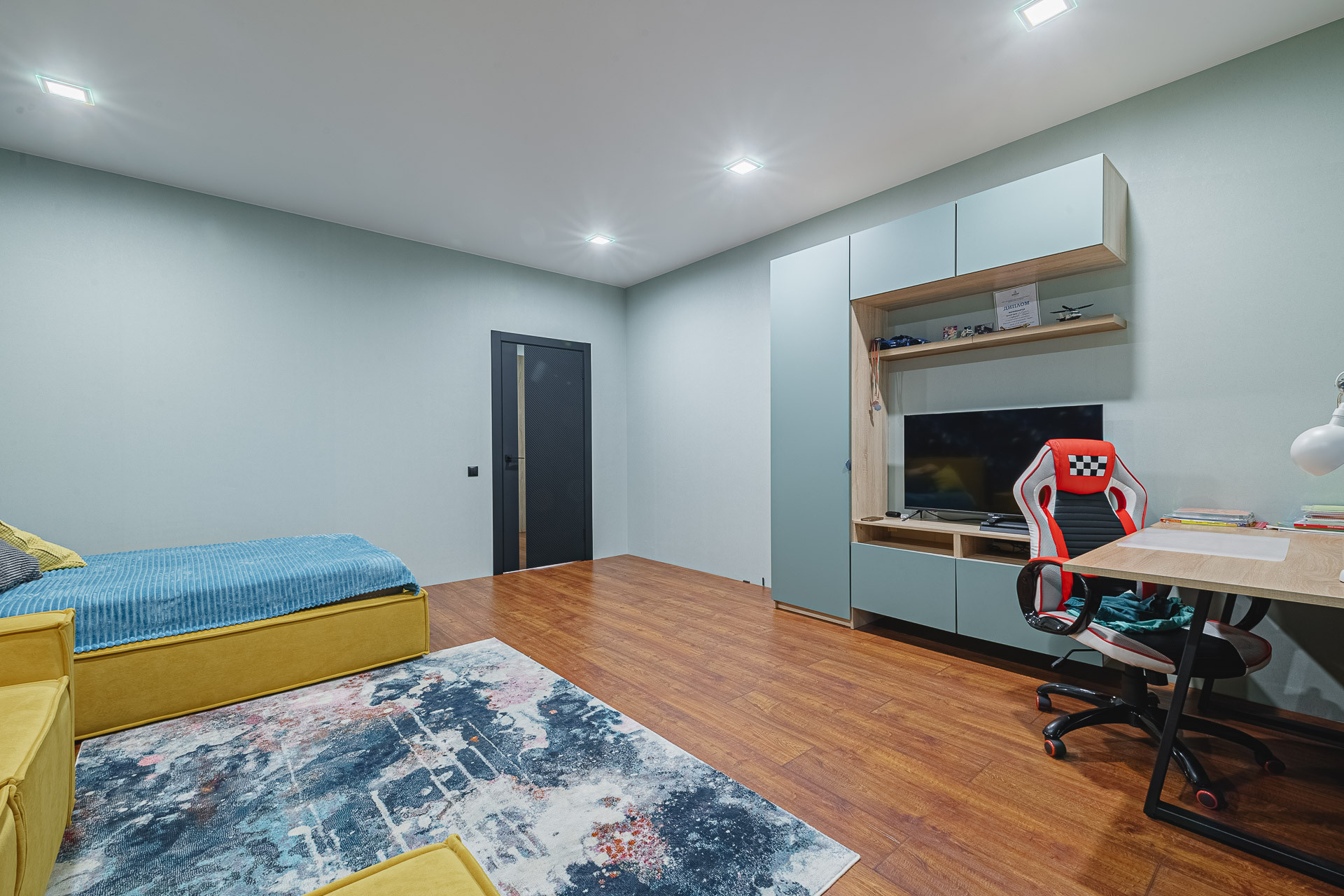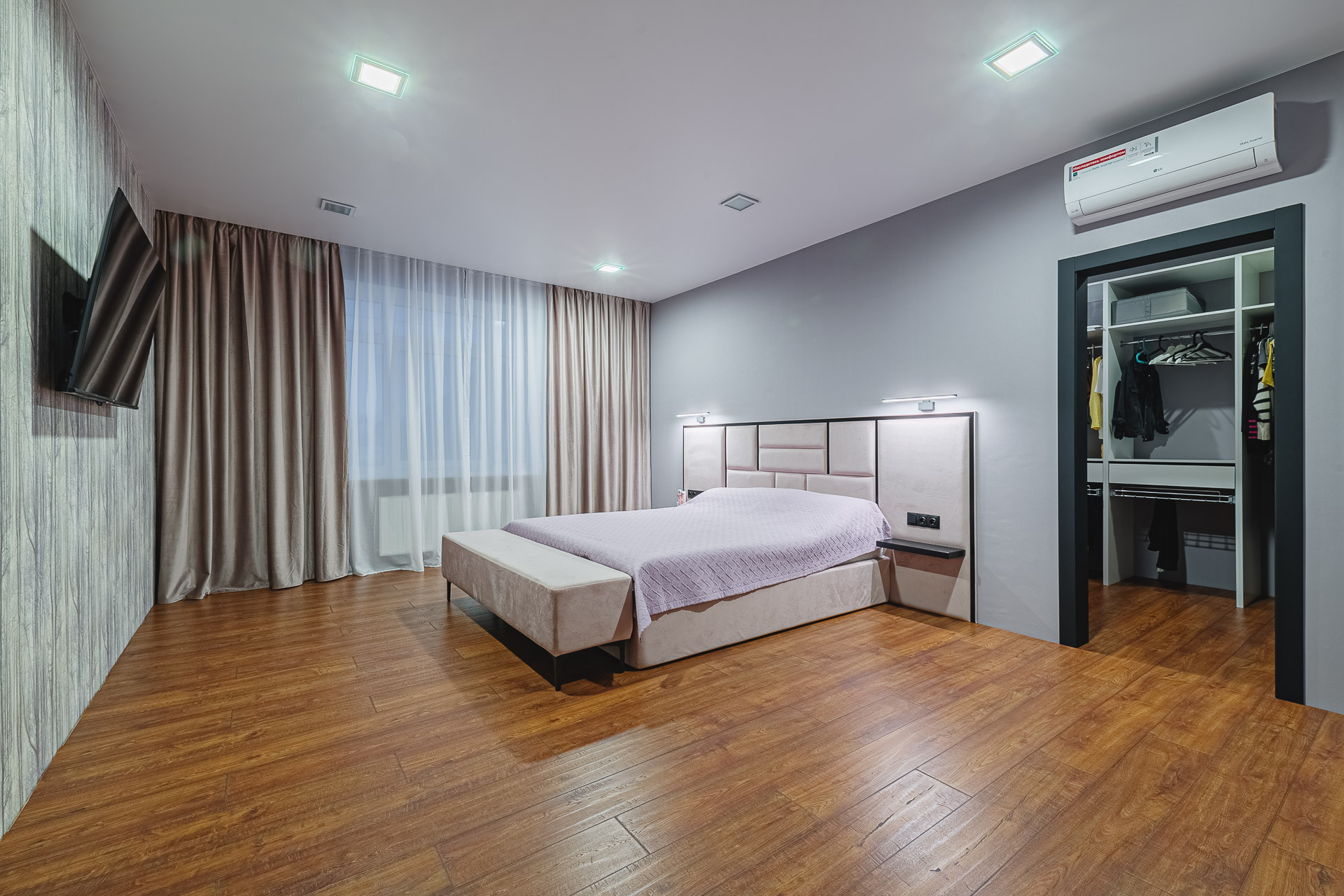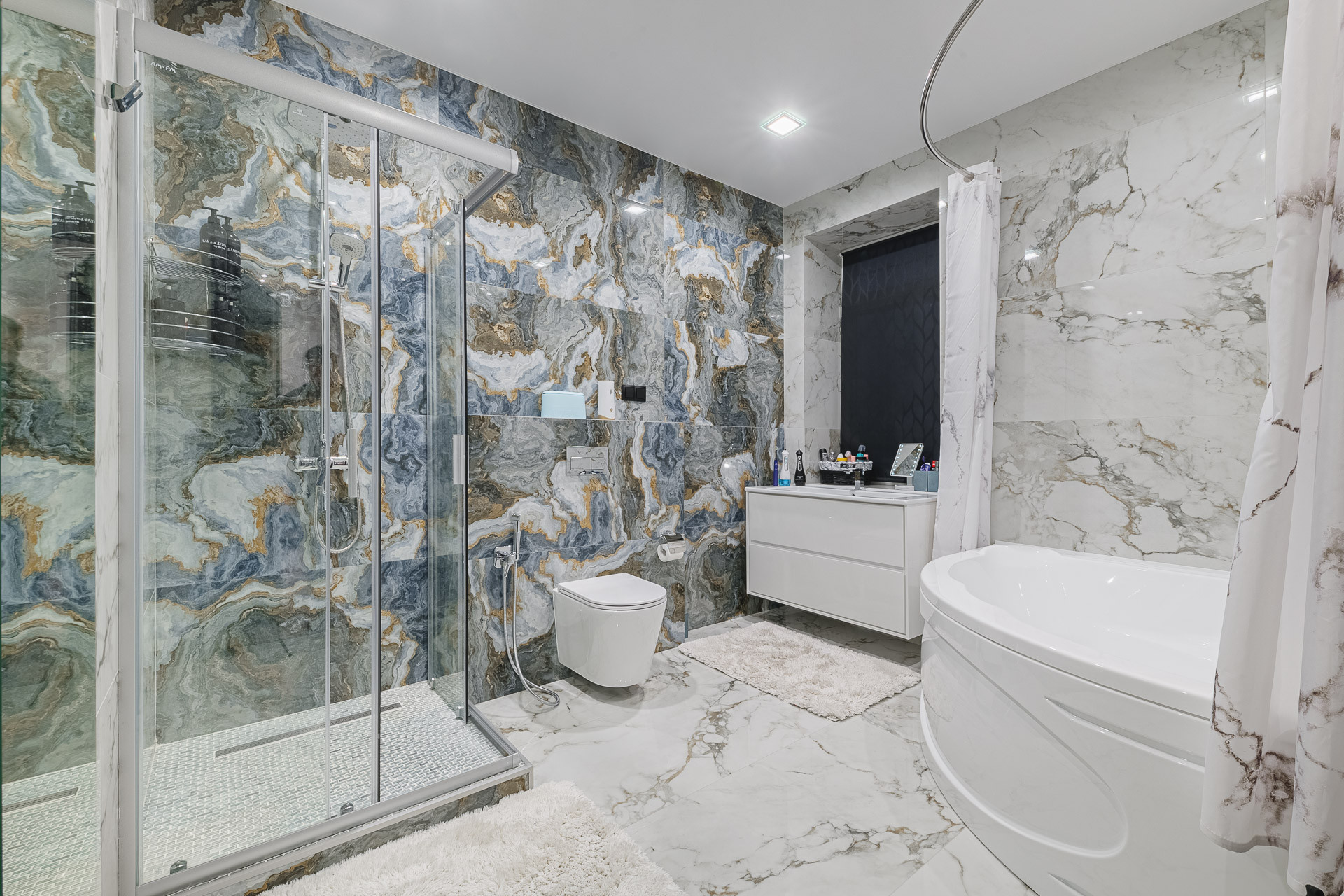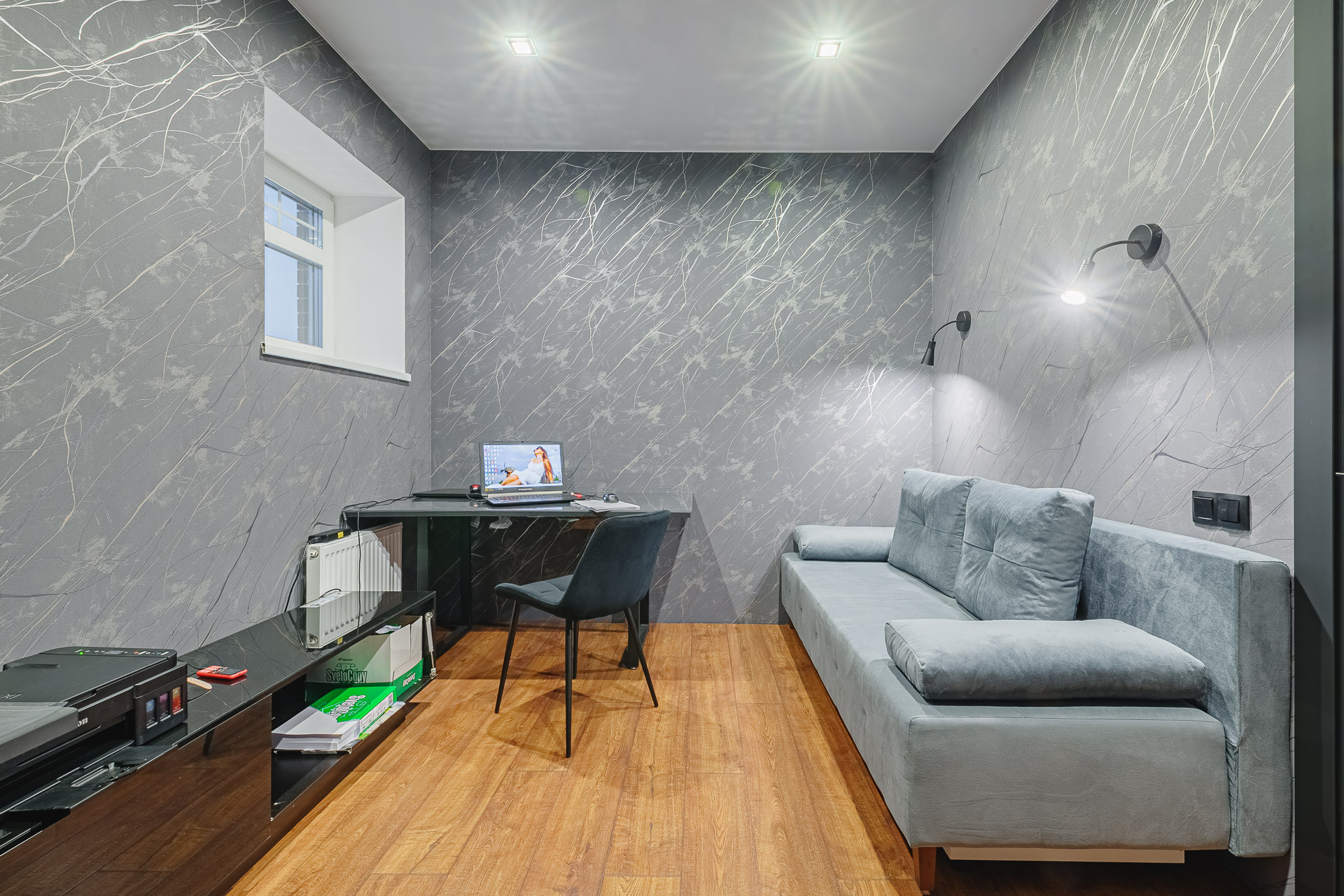 Дизайнерский ремонт с использованием высококачественных материалов. Мебель изготовлена на заказ индивидуально.