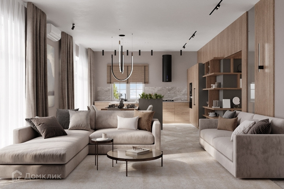Установлена кухня, со встроенной техникой, островок и зона отдыха для проведения приятных вечеров как за просмотром фильмов с семьей, так и для встречи с друзьями.