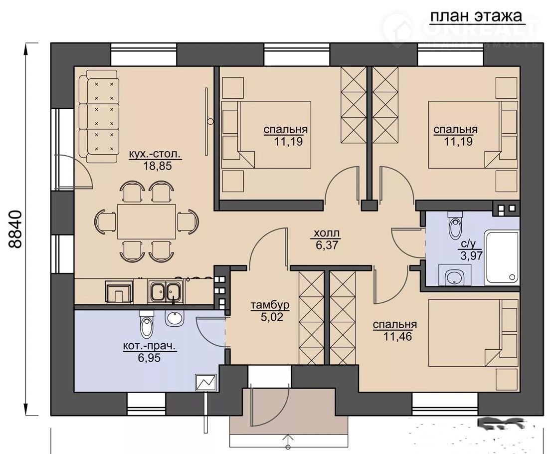 Общая площадь 95 м2