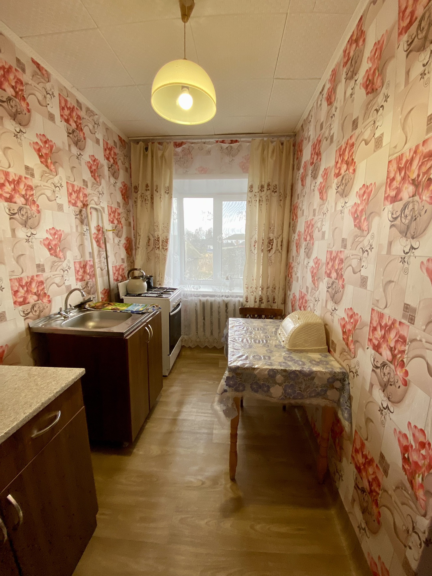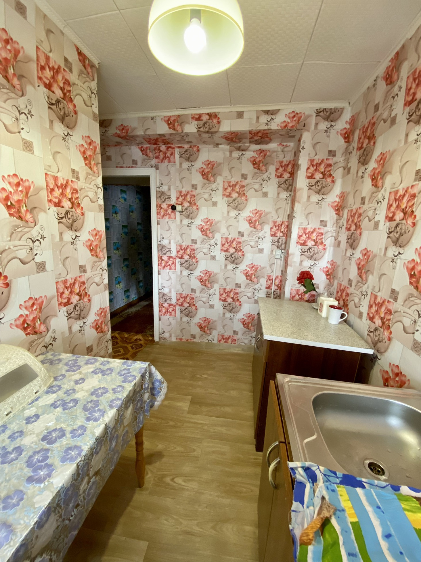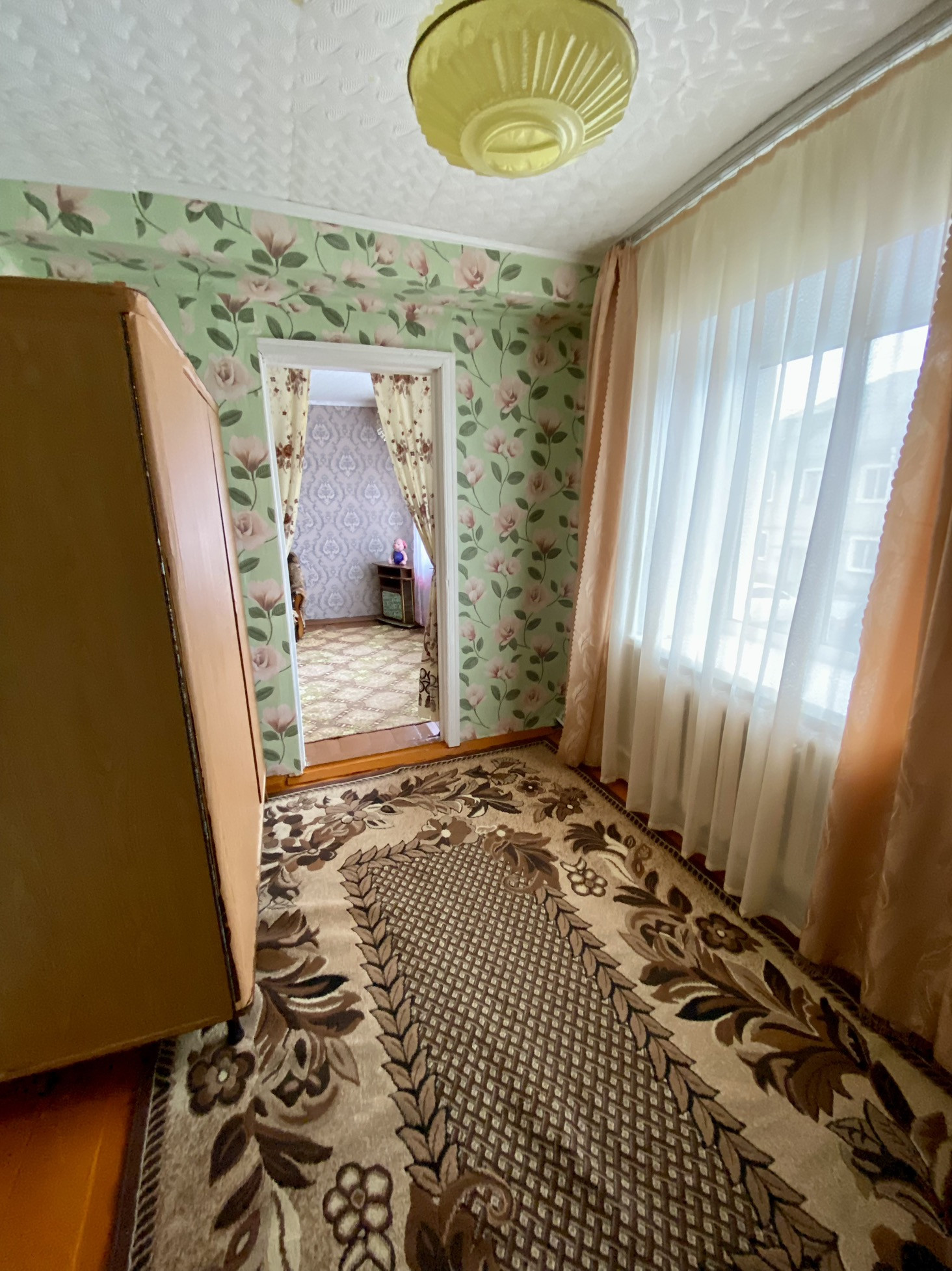 Квартира с косметическим ремонтом. Светлая, чистая,тёплая. Комнаты смежные,установлены окна пвх,с/узел совмещ,пласт.панель. Заменена сантехника. Остаётся мебель. Около дома есть разработанный участок с кустарниками плодовых культур. Так же кладовое место для хранения инвентаря. Следует отметить, что в шаговой доступности расположены: дет.сад, школа, детская площадка, сетевые супермаркеты, магазины, почта, остановка общественного транспорта, стадион, парк.