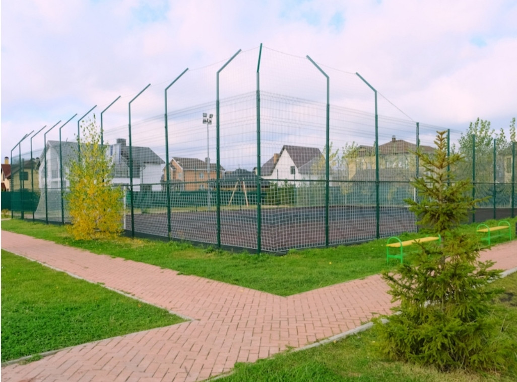 детские площадки, озеро, фонтан, спортивные площадки. На территории комплекса находится детский сад.