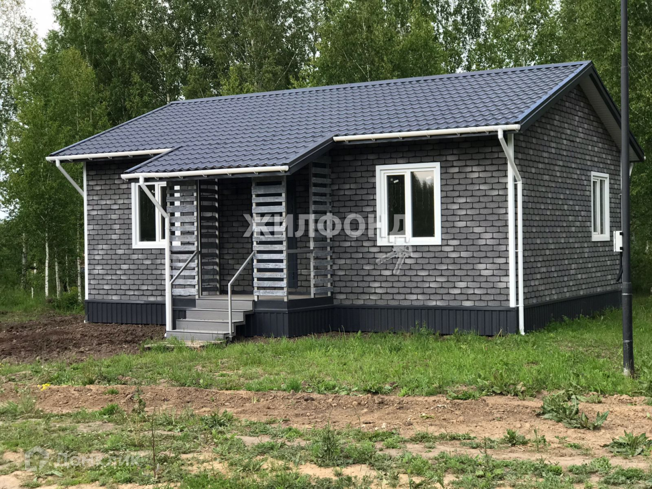 Дом 2021г.п. на винтовых сваях, обвязанных брусом 150*150, стены - siр-панели 174мм - облицованы фасадной плиткой Технониколь Hаubеrk, перекрытия и полы - siр-панели 224мм, межкомнатные перегородки - siр-панели 124мм, кровля - металлочерепица. ЧИСТОВАЯ САМООТДЕЛКА!