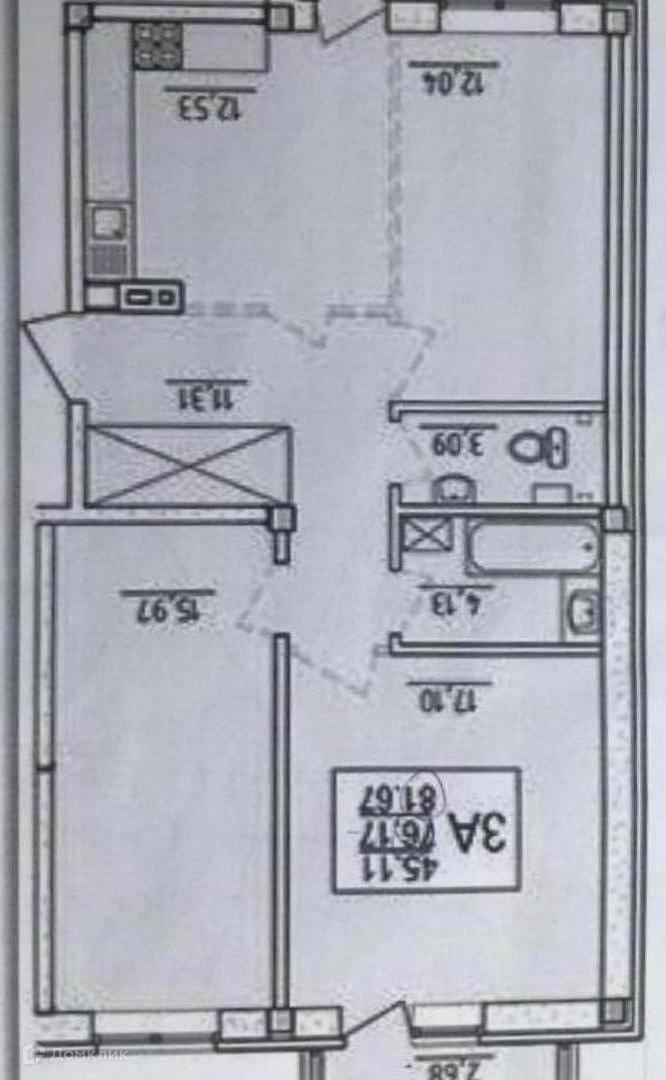 Общая площадь 81.90 кв.м, планировка позволяет сделать четырехкомнатную квартиру: