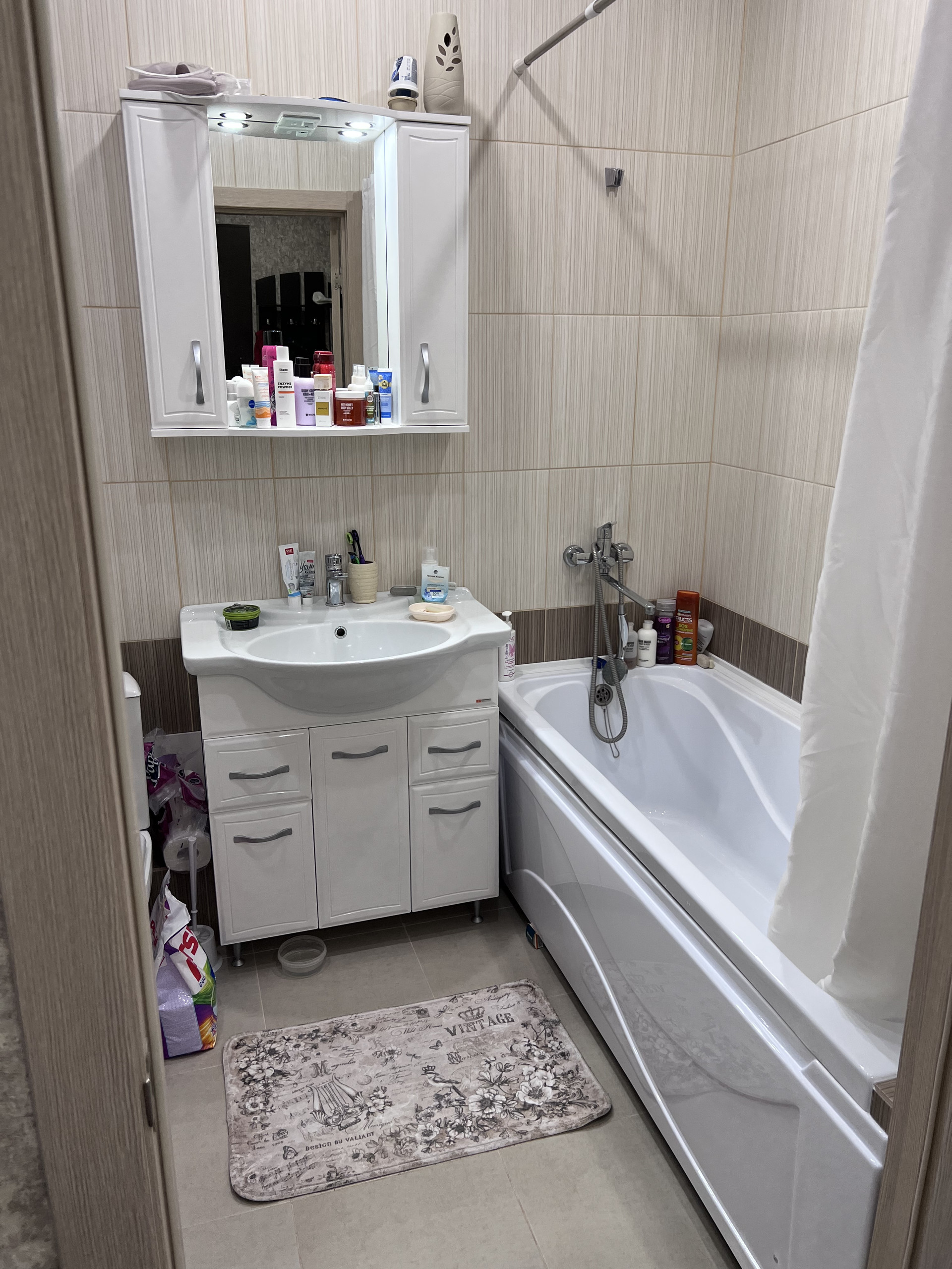 В квартире остаётся весь санфаянс, зеркало и тумба, натяжной потолок, отличные окна от застройщика, звуков с улицы не слышно, батареи биметаллические (от них теплоотдача больше). Установлена хорошая качественная входная дверь.