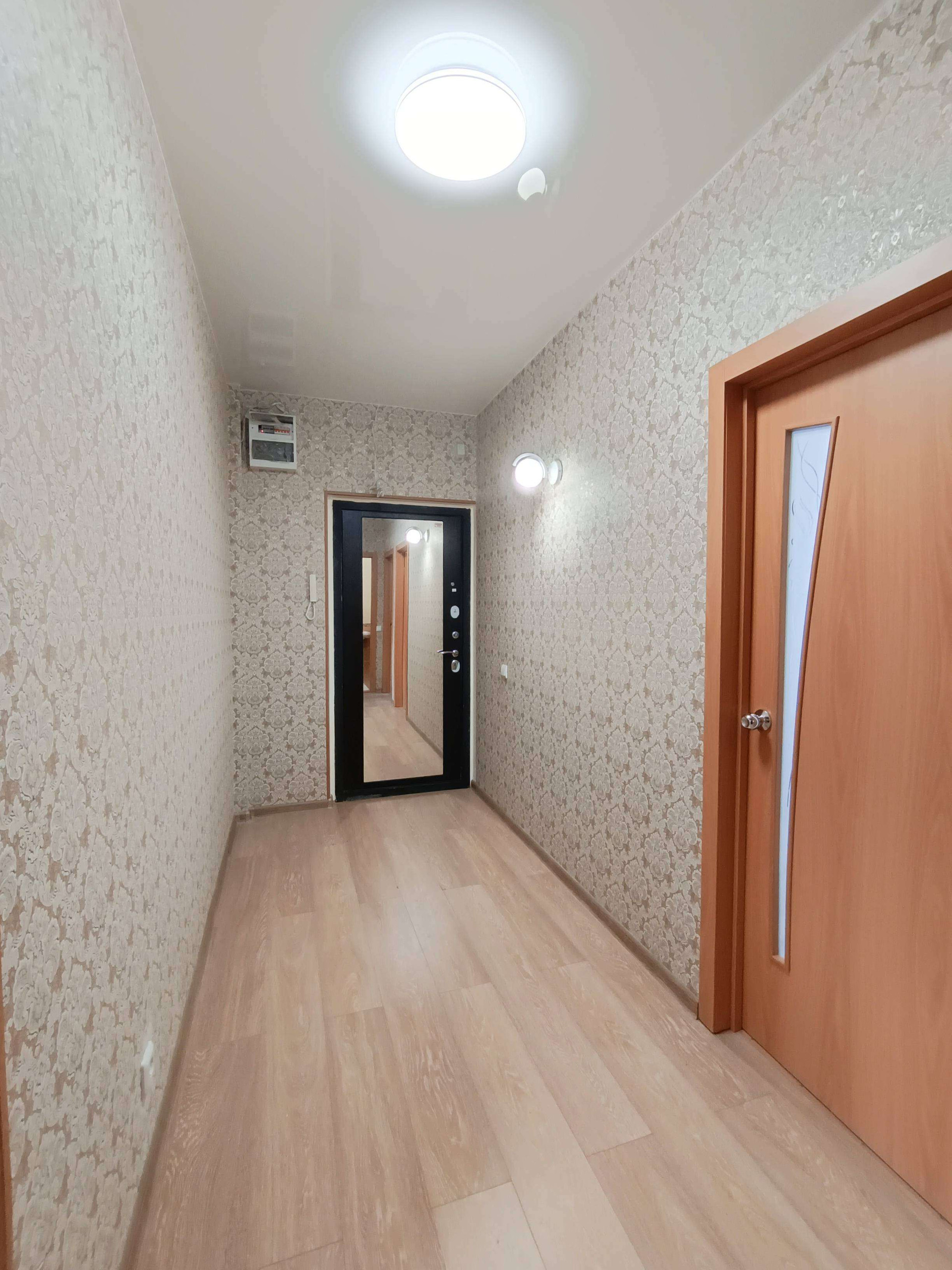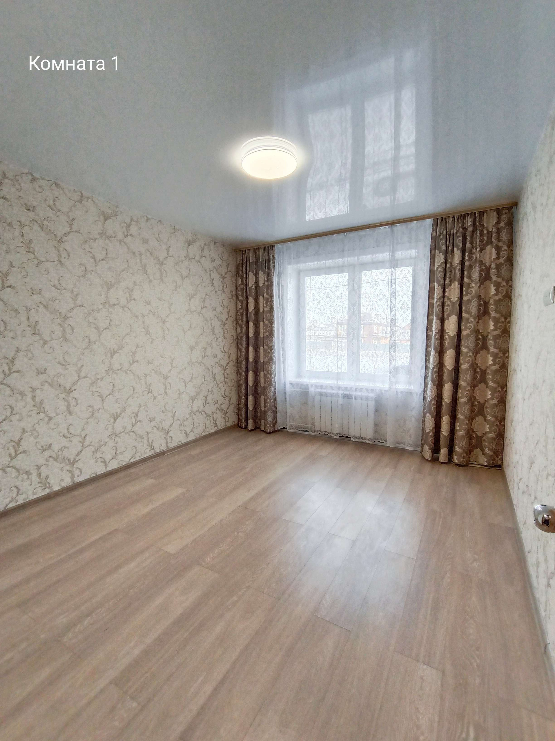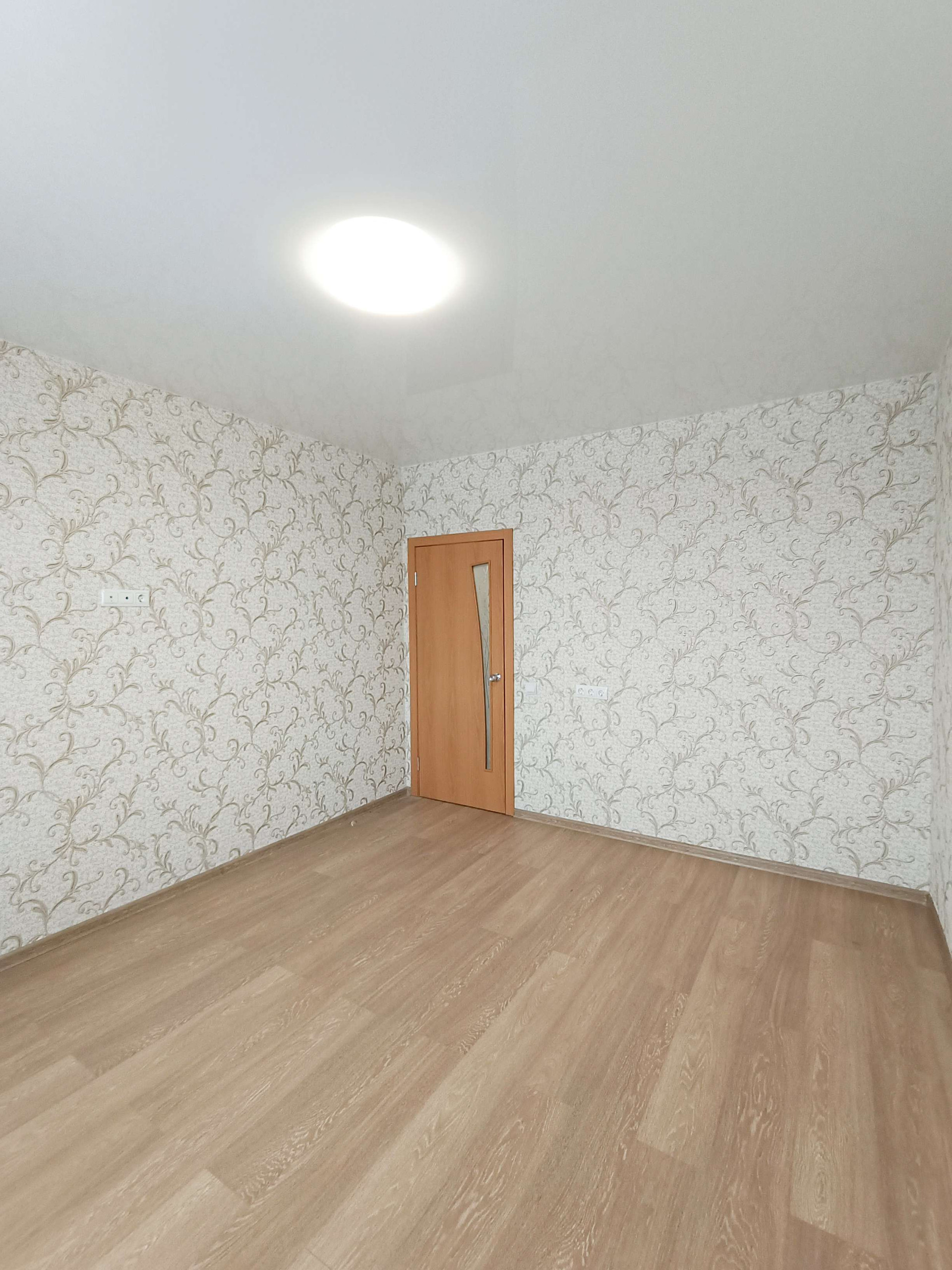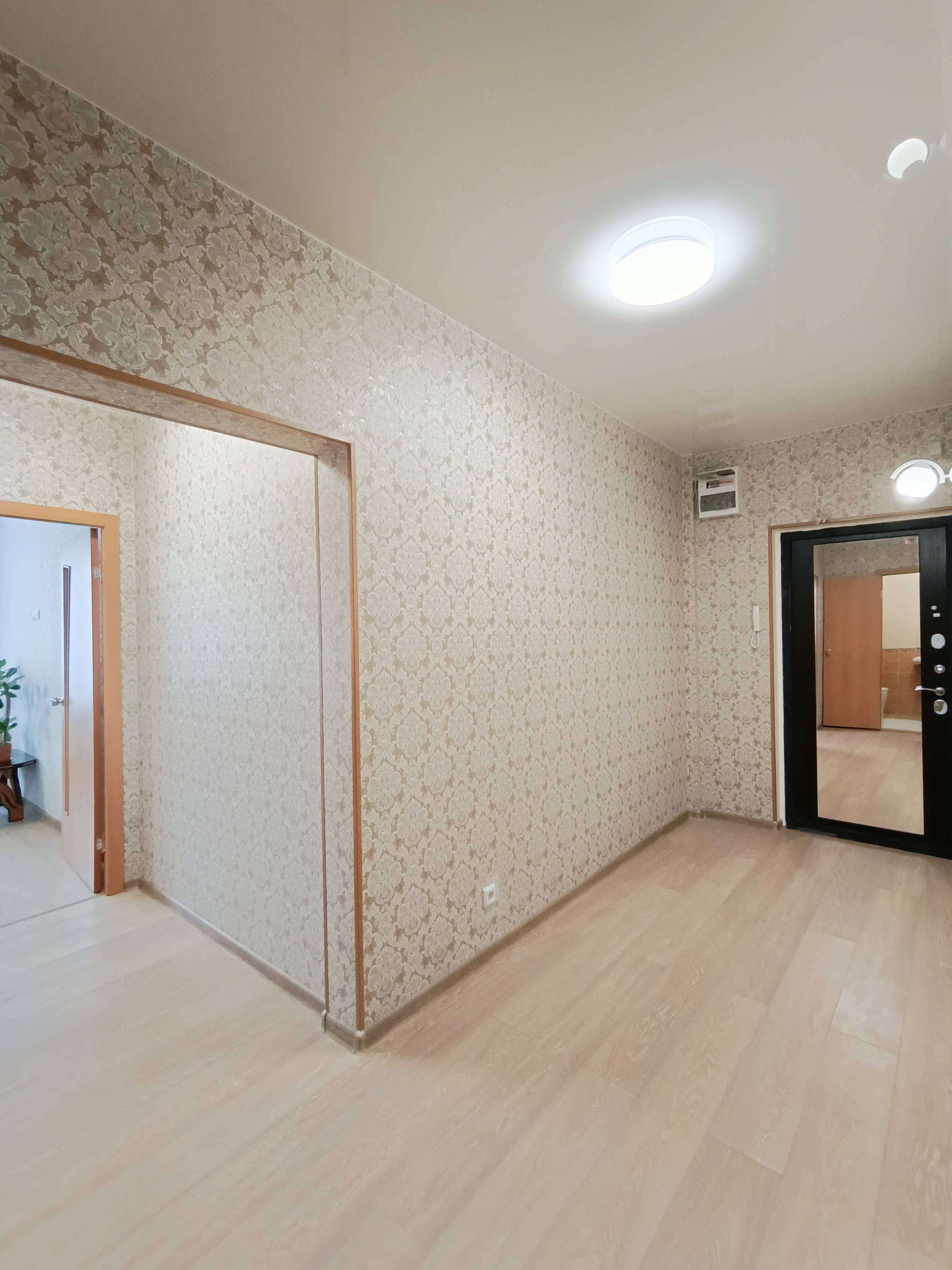 На полу ламинат, ванная - туалет: керамическая плитка, балкон с теплым полом. Во всей квартире натяжные потолки (с хорошим освещением). Везде установлены межкомнатные двери, качественная входная дверь с большим зеркалом.