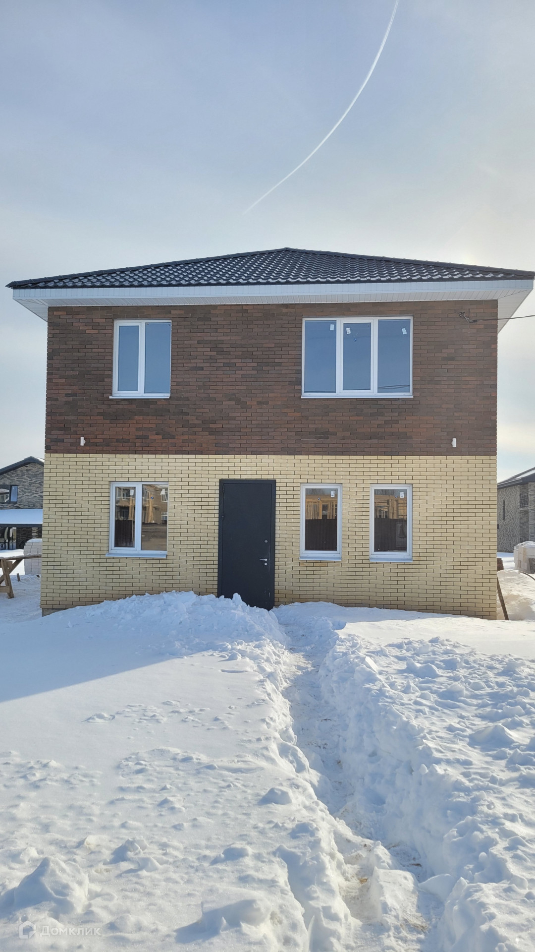 Общая площадь дома 148 кв. м. На первом этаже: кухня 20 м, гостиная 25 м, кабинет, котельная, с/у. Высота потолка первого этажа 3.0 м. Второй этаж: 3 спальни, гардеробная, с/у. Высота потолка второго этажа 2,7 м. Фундамент железобетонный, свайно-ростверковый. По периметру наружных стен асфальтобетонная отмостка толщиной 100 мм, шириной 1000 мм. Наружные стены - газоблоки, облицовочный кирпич. Межкомнатные перегородки - газоблок. Перекрытие 2 этажа - доска 200х50мм с утеплением минераловатными плитами типа 11URSA 11 200 мм. Крыша - вальмовая, стропильная с деревянными несущими элементами выполненных из бруса 150х50 мм с покрытием из металлочерепицы. Окна пластиковые с двойным остеклением. Внутренние стены оклеены обоями или окрашены. Потолки натяжные. Полы ламинат, в санузлах и кухне керамическая плитка. Коммуникации: электричество 15 кВт, холодное водоснабжение - скважина,