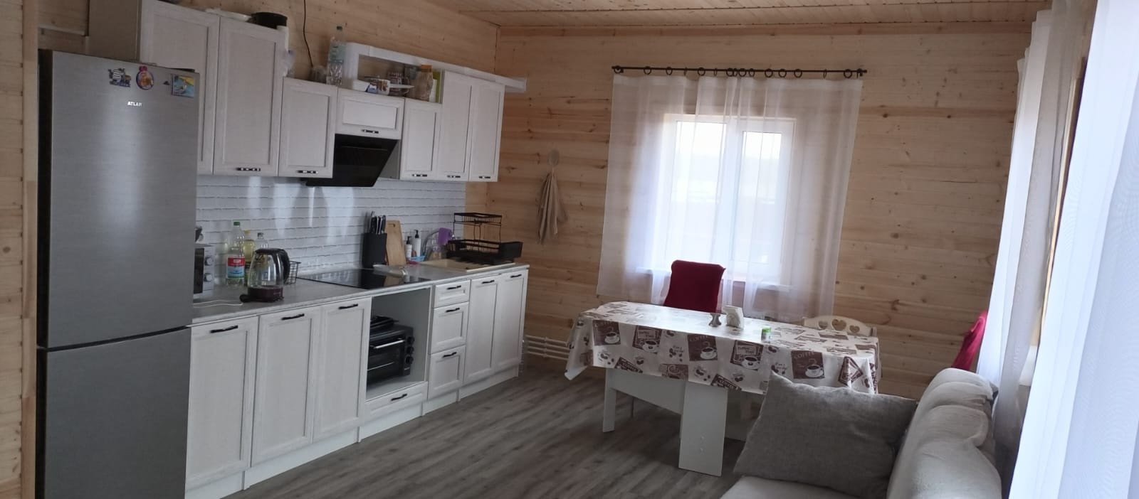 Технические характеристики: Фундамент сваи. Стена: утепление 200 мм. Электричество 15 кВт, три фазы. Отопление от электрокотла, разведено по дому (батареи).