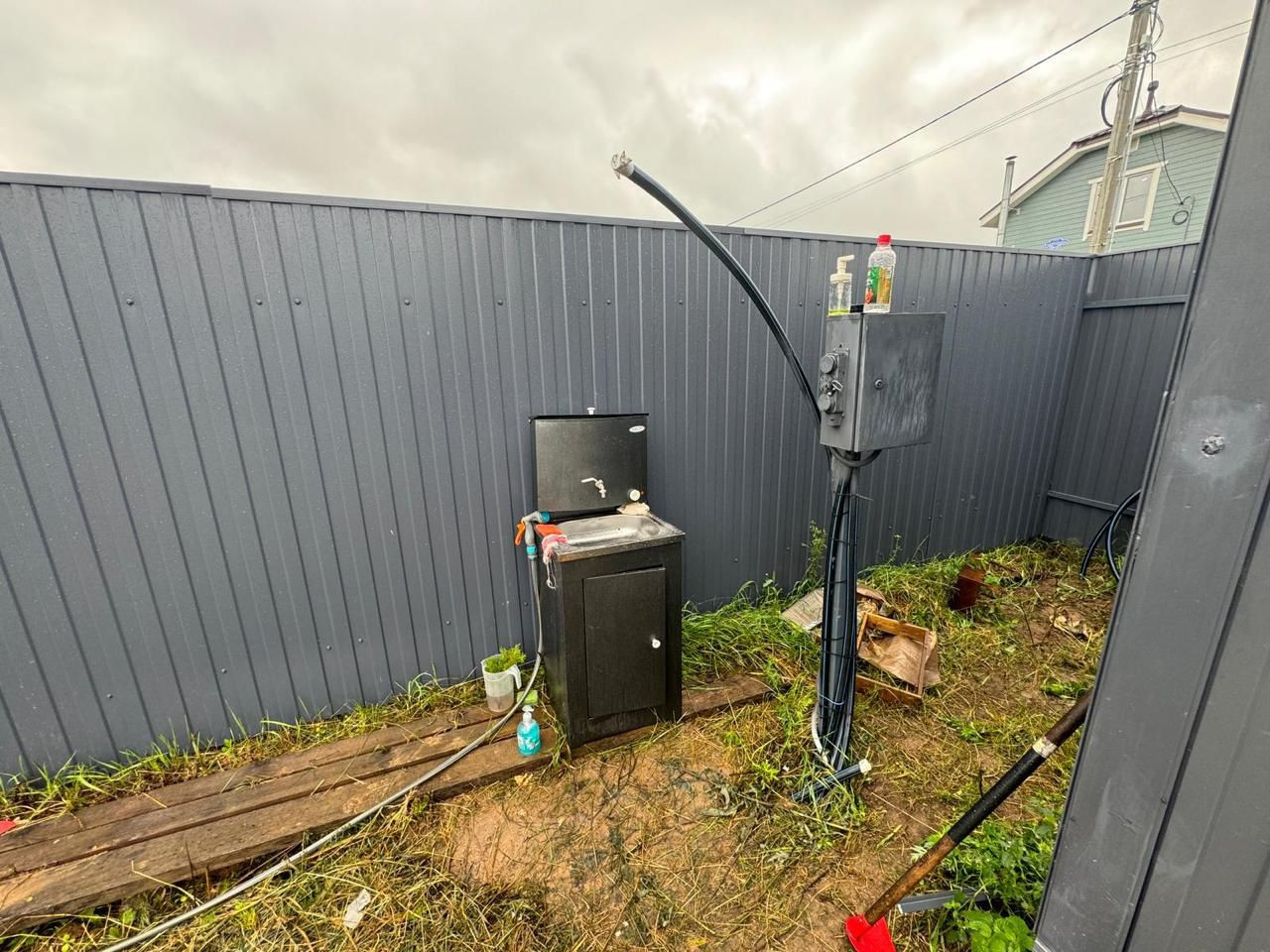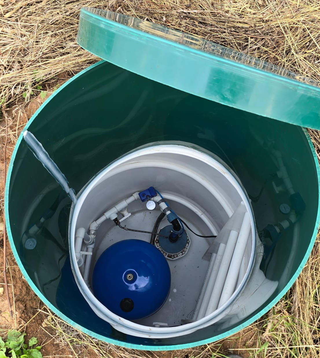 Пробурена скважина  и установлен кесон для воды с тремя выходами для основного дома, гостевого дома и для летнего водопровода(артезианская чистая вода)