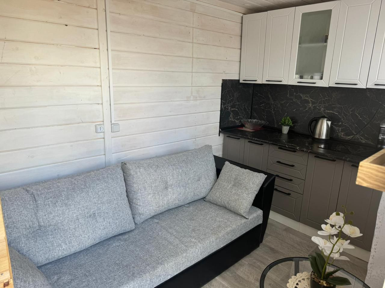 Временный домик с новой мебелью и кухонной гарнитурой, индукционной плитой,
