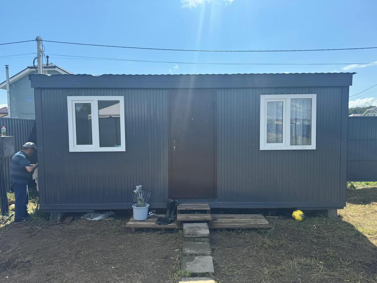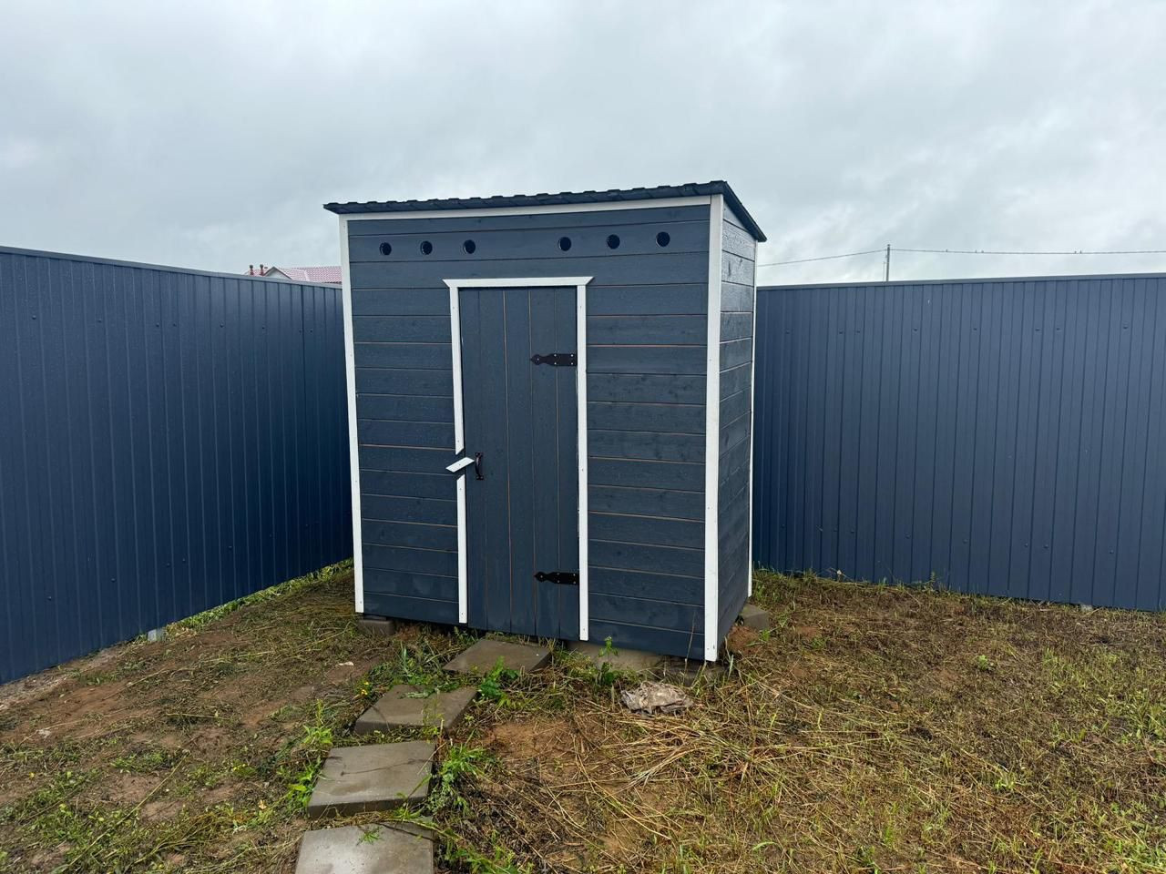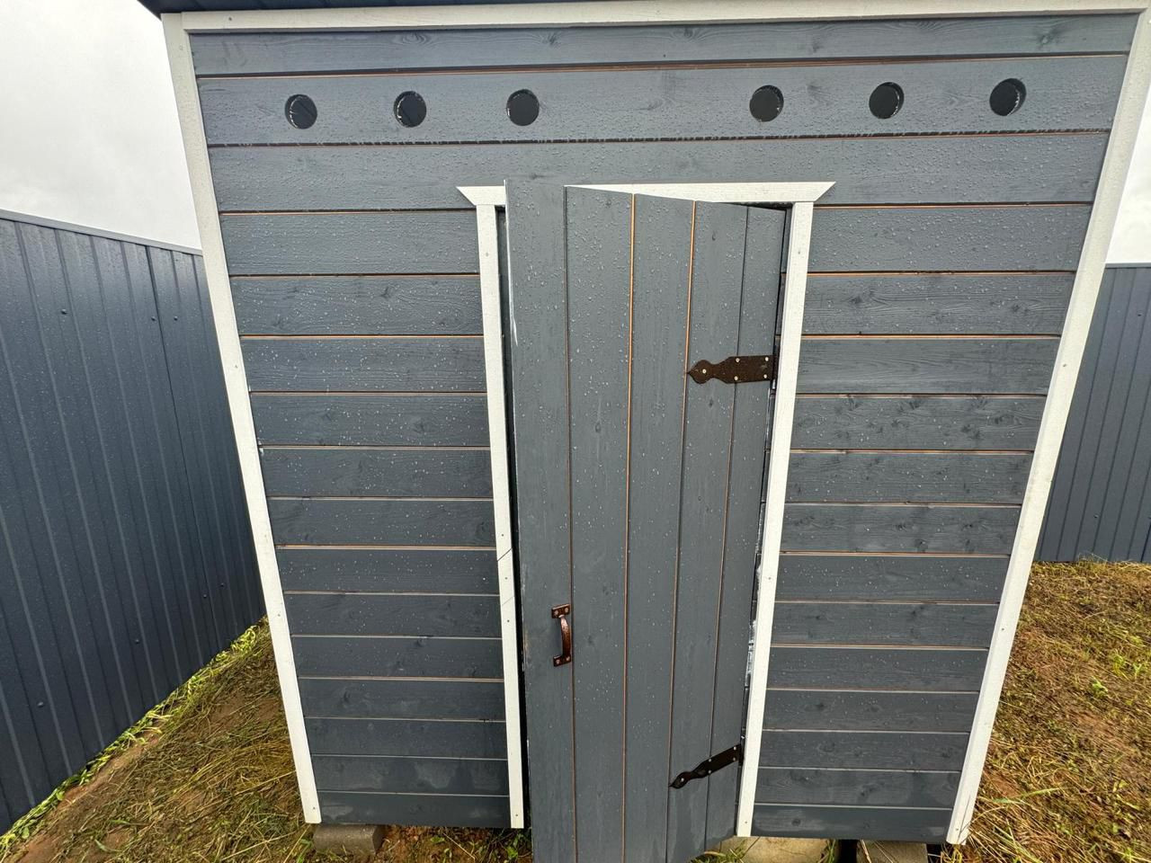 Ворота, домик, туалет - все в одной цветовой гамме, смотрится гармонично