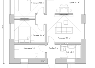 Общая площадь: 50 м2