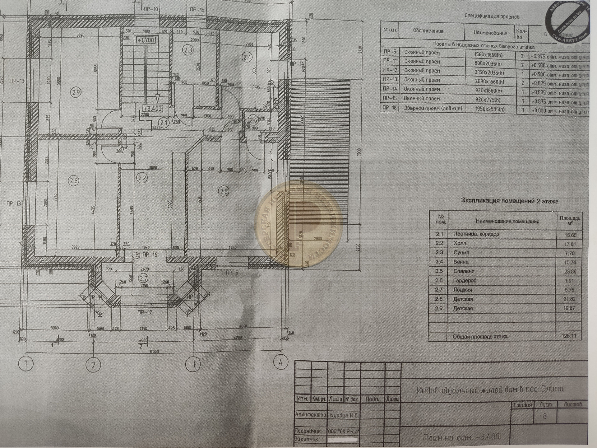 Коттедж площадью 240 м2, построенный по проекту, на участке 20 соток, назначение земли ИЖС (индивидуальное жилищное строительство). Коттедж построен из кирпича, перекрытия пола первого этажа и перекрытия между первым и вторым этажом железобетонные. На первом этаже располагается кухня 23 м2, гостиная 27 м2, кабинет 20 м2, гардеробная 9 м2, санузел 9м2. На втором этаже три спальни площадью 24 м2, 22 м2 и 20 м2, также санузел 11 м2, прачечная 8 м2.