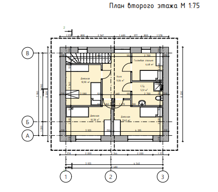 На втором этаже расположены: 4 спальные комнаты, санузел и холл.