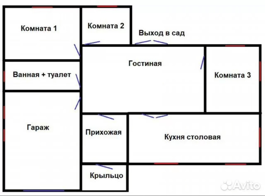 Дом расположен относительно сторон света, жилые комнаты на востоке и юге, кухня и прихожая на юго-западе, западе.