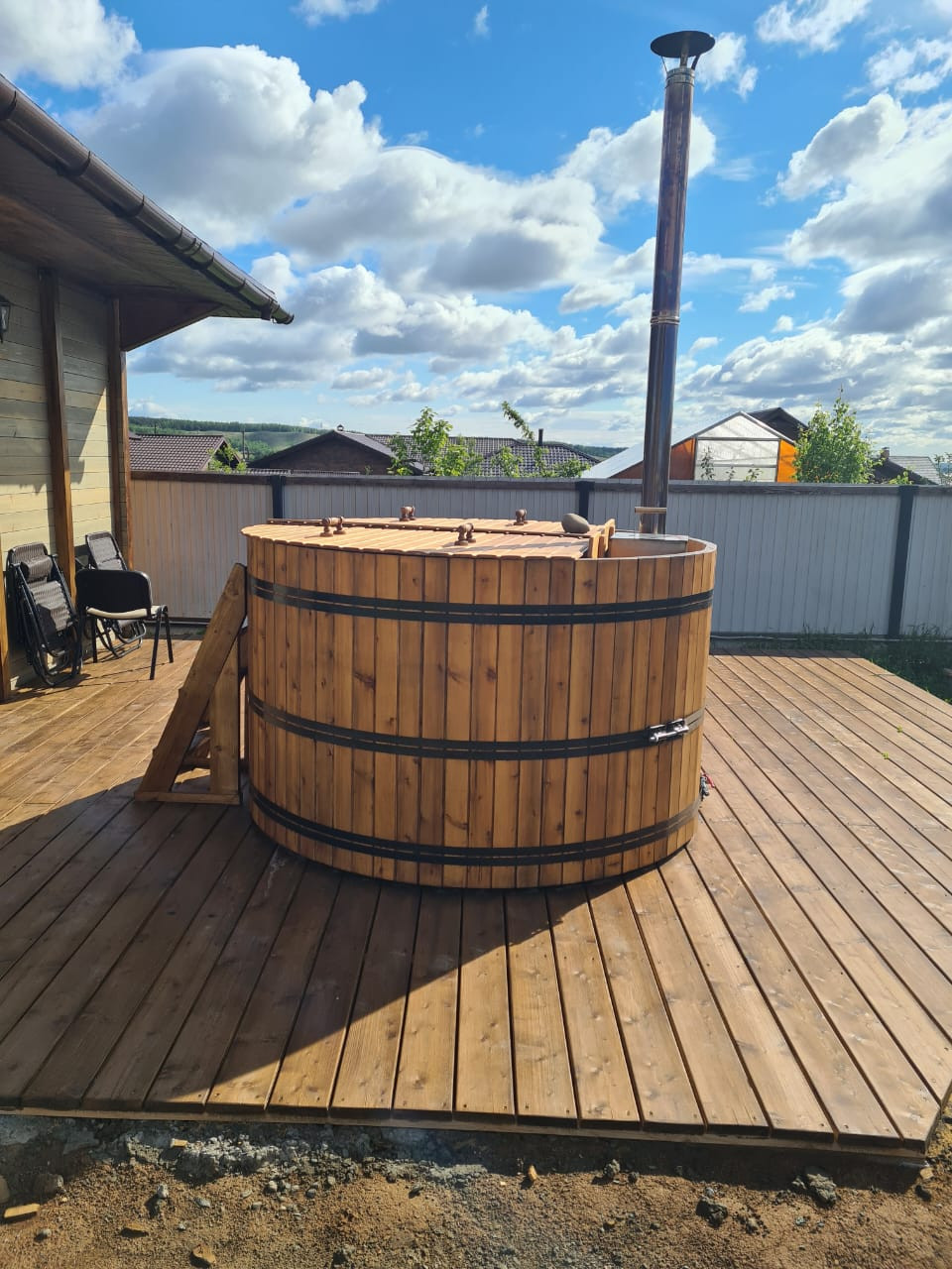 На территории выполнен ландшафтный дизайн, располагается хозблок в отдельном здании, а так же расположен гараж на два автомобиля и баня с огромной беседкой и бочкой Фурако.
