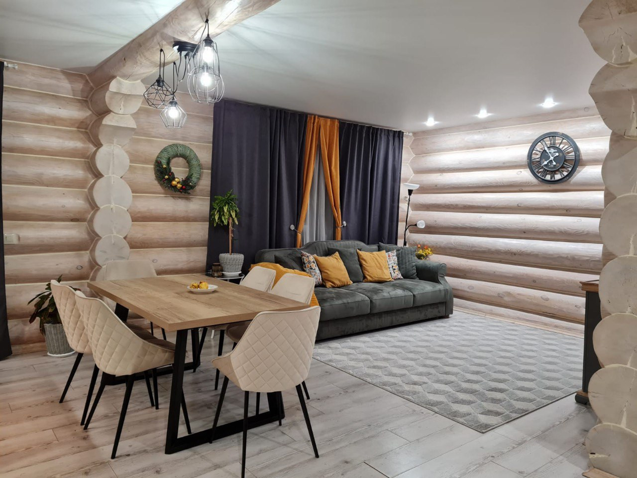 Чистовая отделка дома была выполнена только через три года после его возведения, что позволило дому правильно осесть. В доме выполнена отделка качественными материалами высокого класса. Вся электропроводка спрятана внутри бревен, нет никаких висящих проводов. Все швы обработаны специальным немецким герметиком, дом очень теплый!