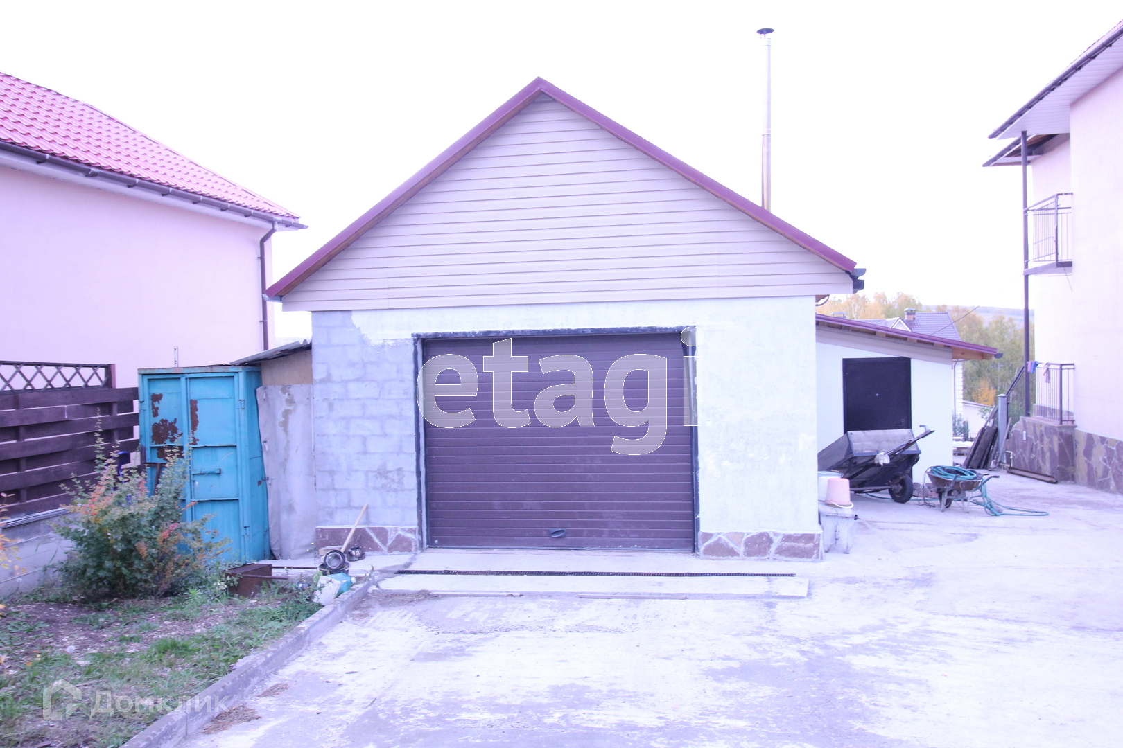 Дополнительные постройки: гараж 50 м.кв. на четыре машины, баня из газобетона в черновой отделке с бассейном (50 куб.)