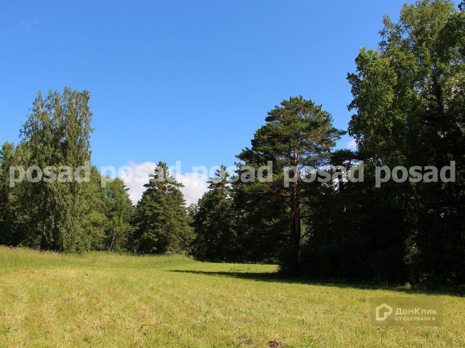 Участок ровный, без уклона, большая поляна окруженная лесом.