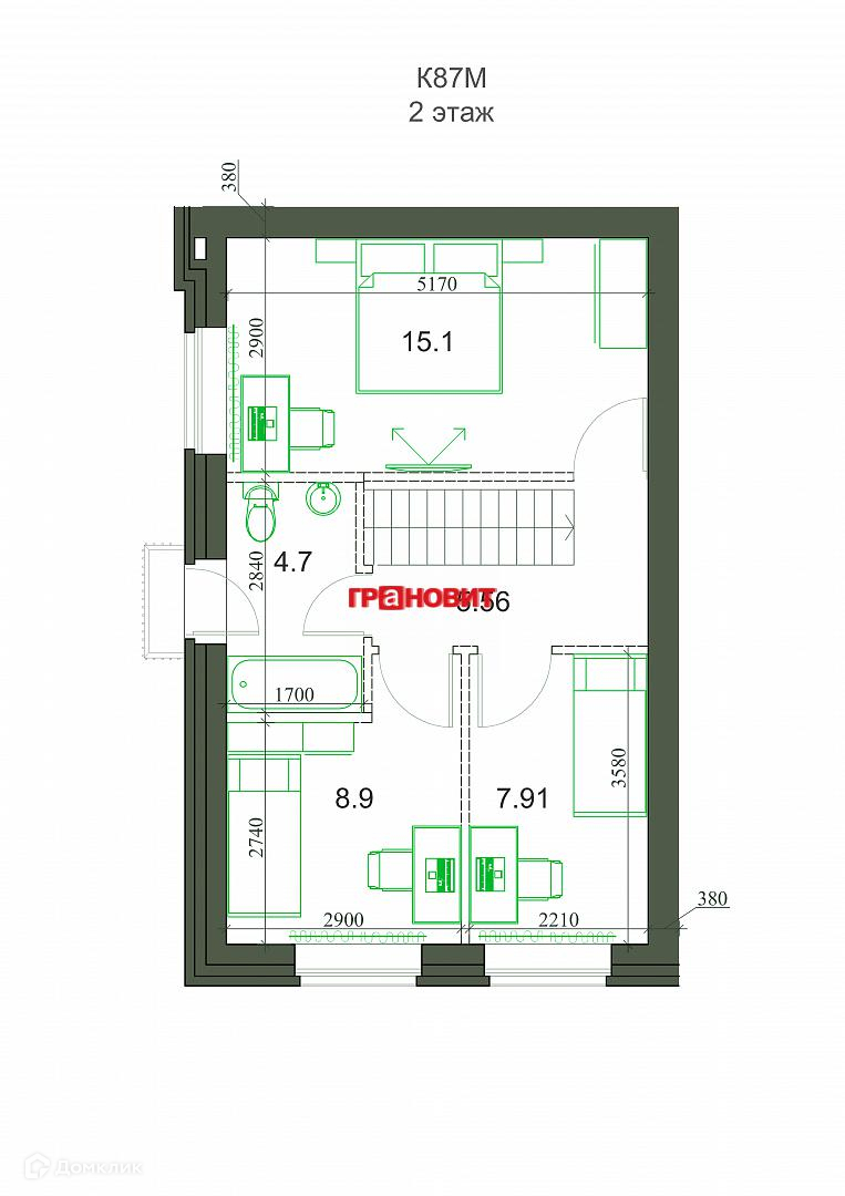 2-этажный дом, 95.65 м2, на продажу в поселке Элитном, микрорайон Берёзки, 123