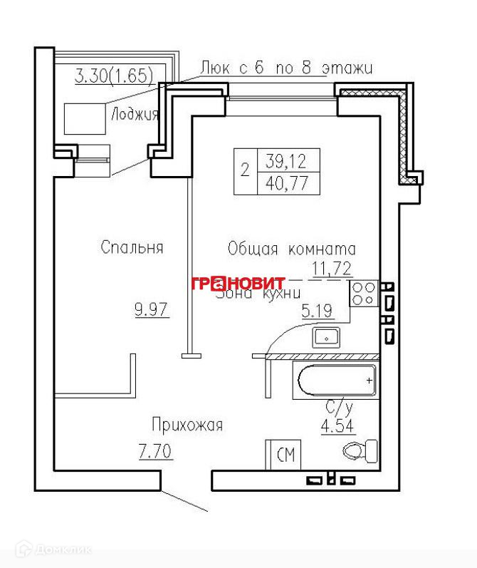 Общая площадь 40.8 м2