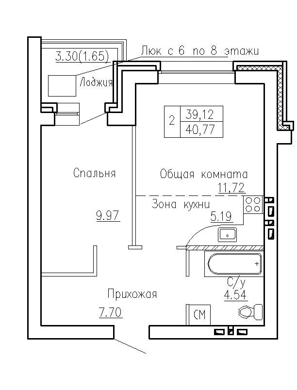 Общая площадь 41 м2