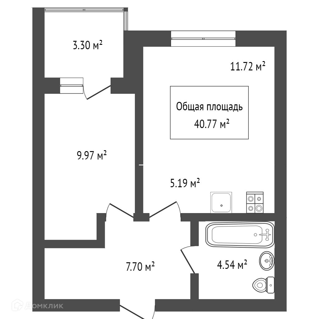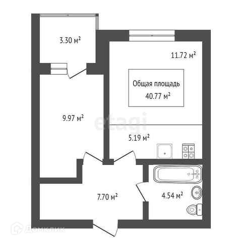 Общая площадь 40.77 м2