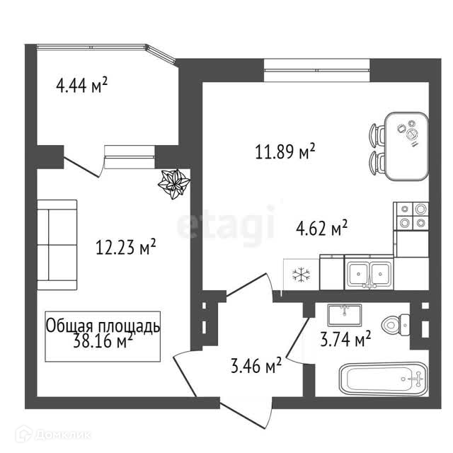 Общая площадь 40 м2