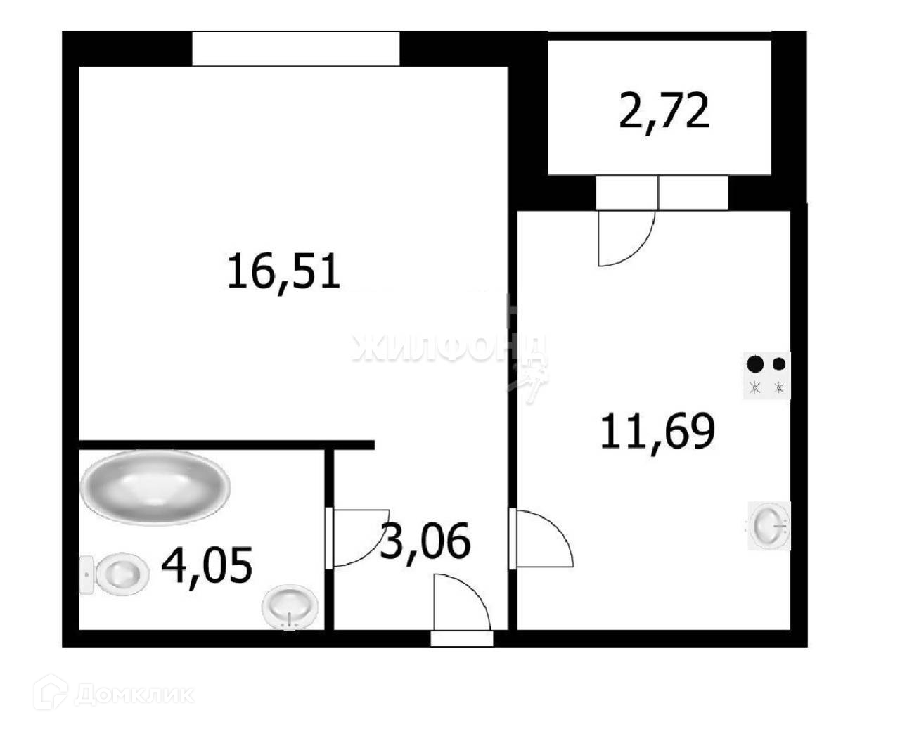 Жилая площадь 16.5 м2